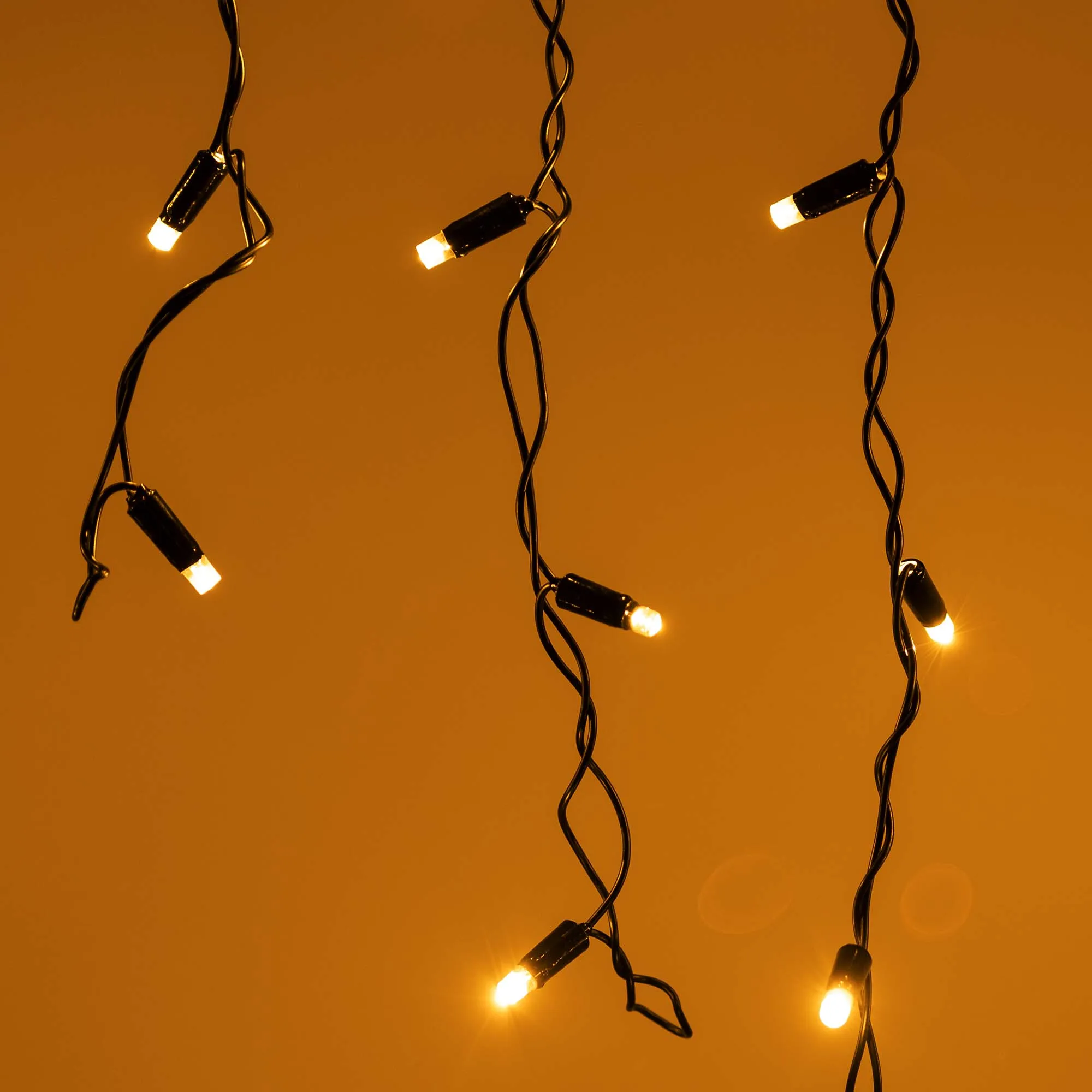 Светодиодная бахрома Classic. Размер 2400 мм (длина 2400 мм, по длине 24 нити высотой 200/600 мм). Количество светодиодов 88 шт размером 7 мм. Основной цвет свечения ТЕПЛЫЙ БЕЛЫЙ (3000 К), эффект мерцания редких точек (ТЕПЛЫЙ БЕЛЫЙ 3000К) с резким световым рисунком (прозрачная вогнутая линза), соотношение светодиодов: 66 теплых постоянного свечения / 12 теплых с мерцанием. Провод черный, ПВХ. Питание 230 В, Мощность 6 Вт, защита IP65, применение на улице под навесом. Аксессуары для подключения приобретаются отдельно.