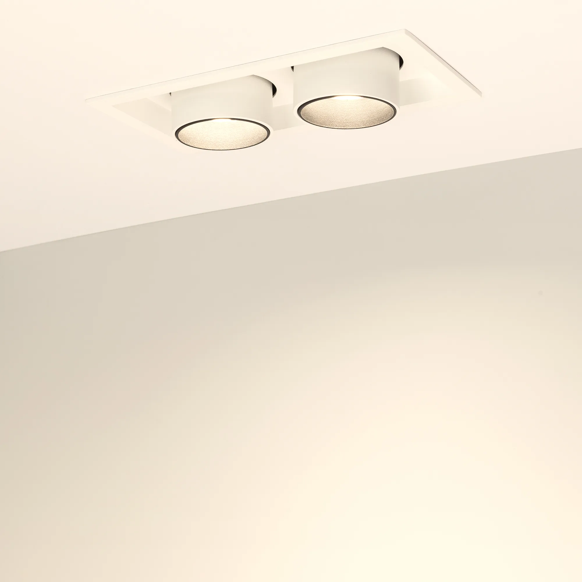 Встраиваемый поворотный выдвигающийся светильник для потолка. Светодиоды 2x10W, цвет БЕЛЫЙ ТЕПЛЫЙ 3000K, св.поток 1900лм, угол 24°, RA>90. Корпус белый. Мощность 20Вт, питание AC220-240V. Размеры WxLxH 112x210x127мм. Установка в отверстие 100x195мм. Драйвера в комплекте (2 шт 30-48V 250mA).