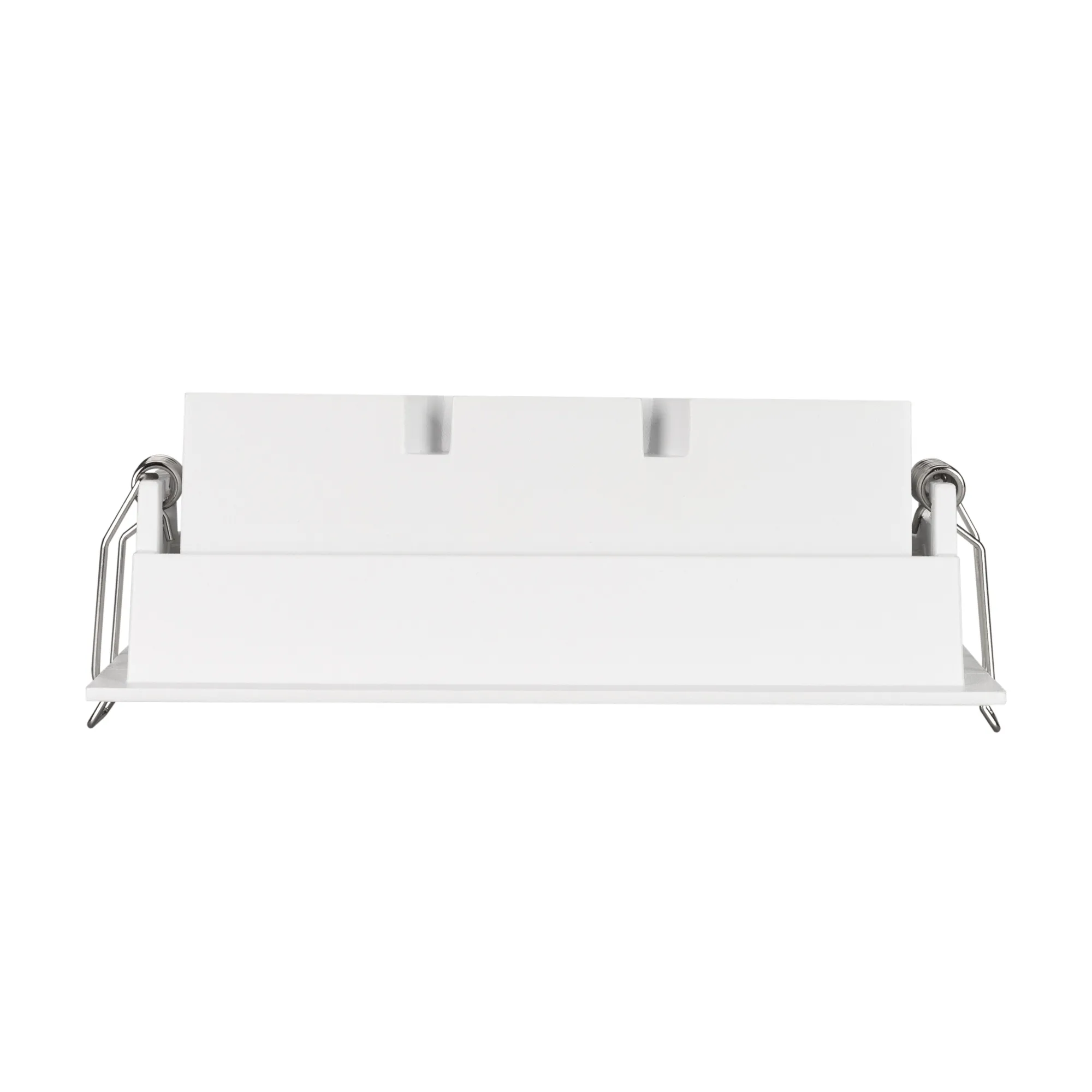 Встраиваемый поворотный светильник. Мощность 10 Вт, св. поток 750 лм, 75 лм/Вт, дневной 4000 K, CRI>98, угол 30°, напряжение питания 230 В. Белый прямоугольный корпус из алюминия, экран PMMA, степень защиты IP20. Размер: длина 150 мм, ширина 67 мм, высота 50 мм. Монтаж встраиваемый, установочное отверстие длина 145 мм, ширина 60 мм. Драйвер 9-14 В, 700 мА, пульсация <1%.