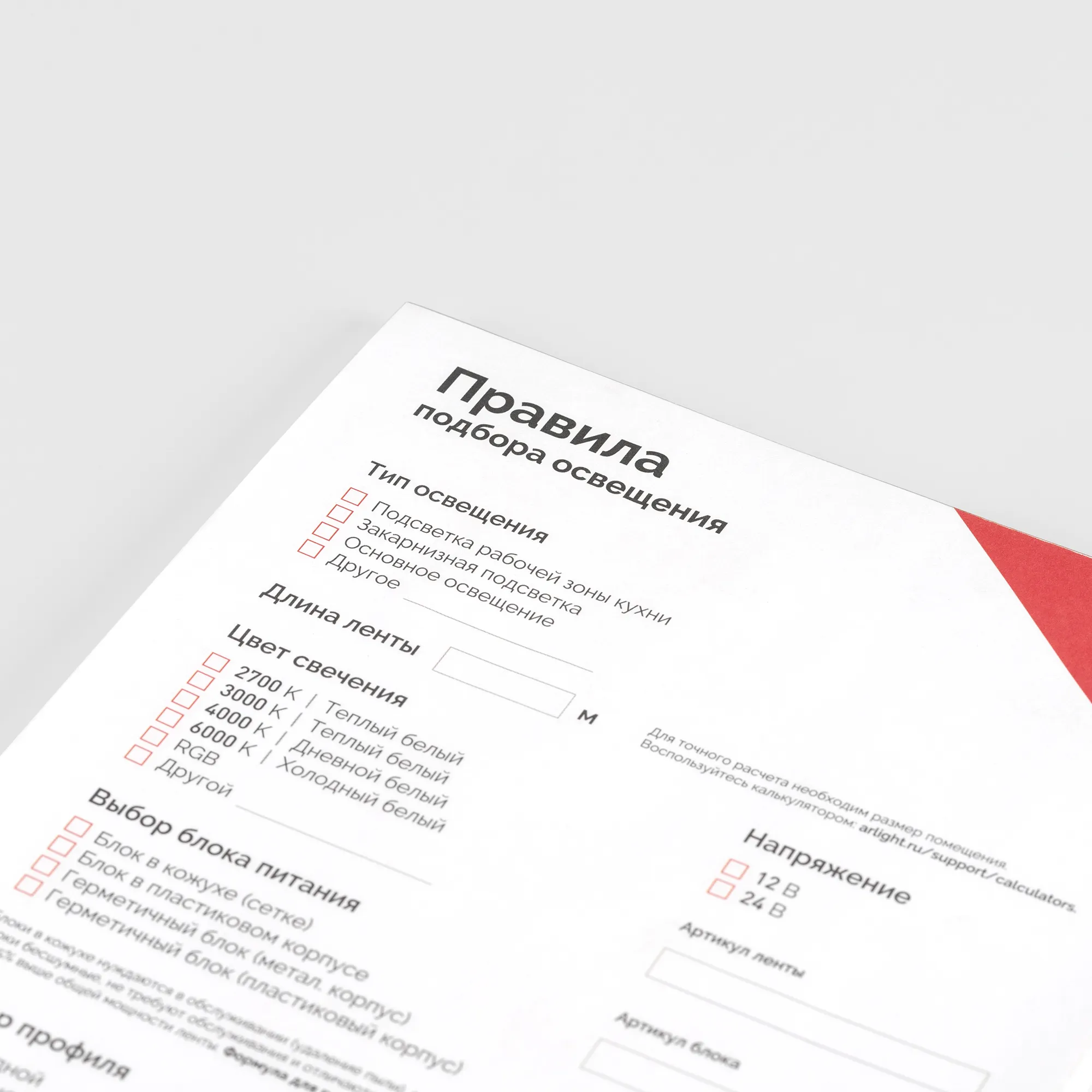 В магазине Арлед Маркет Вы можете купить "Блокнот- подсказка Правила подбора ленты, блоков питания, профиля и управления (Arlight, -)"