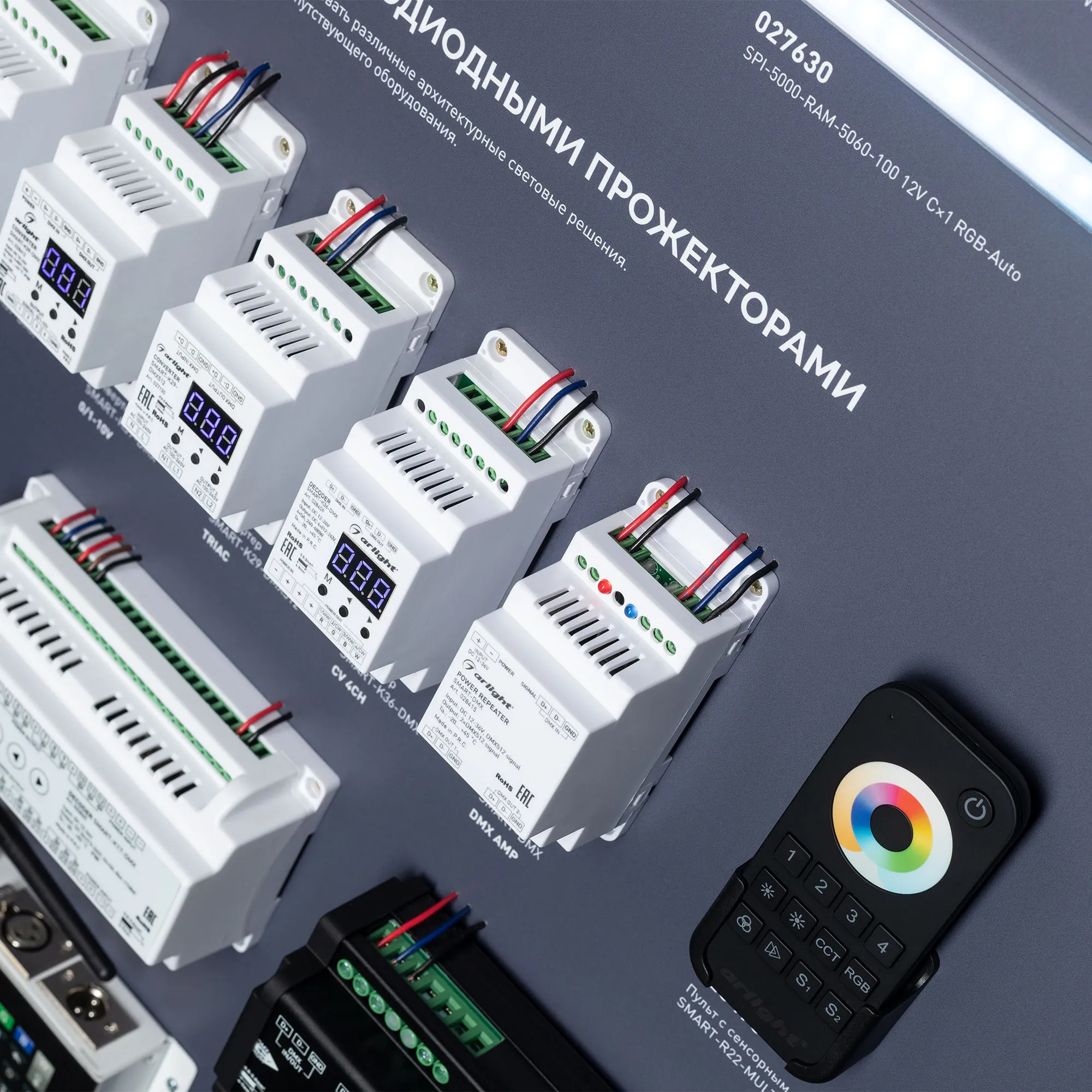 В магазине Арлед Маркет Вы можете купить "Стенд Управление светильниками DMX512 E34 1760x600mm (DB 3мм, пленка, лого) (Arlight, -)"
