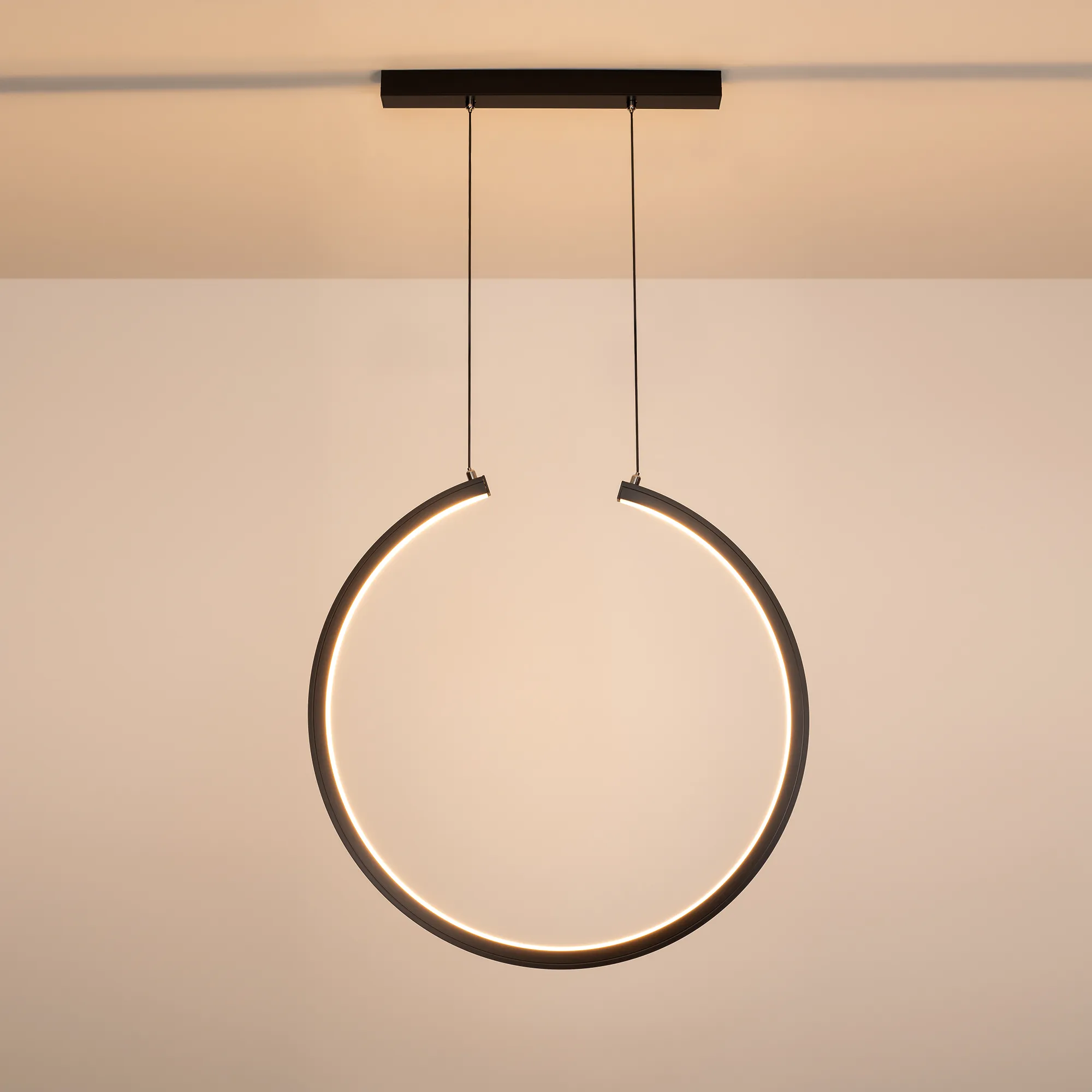 Дизайнерский профиль в форме круга. Для создания подвесного светильника. Диаметр 700 мм. Свечение внутрь. В комплекте: круглый профиль - 1 шт., экран - 1 шт., крепеж с фиксатором троса - 2 шт., дюбель-саморез - 2 шт., отсек для блока питания - 1 шт., крышка отсека для блока питания - 1 шт., заглушка отсека для блока питания - 2 шт., винт заглушки отсека для блока питания - 8 шт., трос 3 м с токопроводящим сечением - 2 шт.