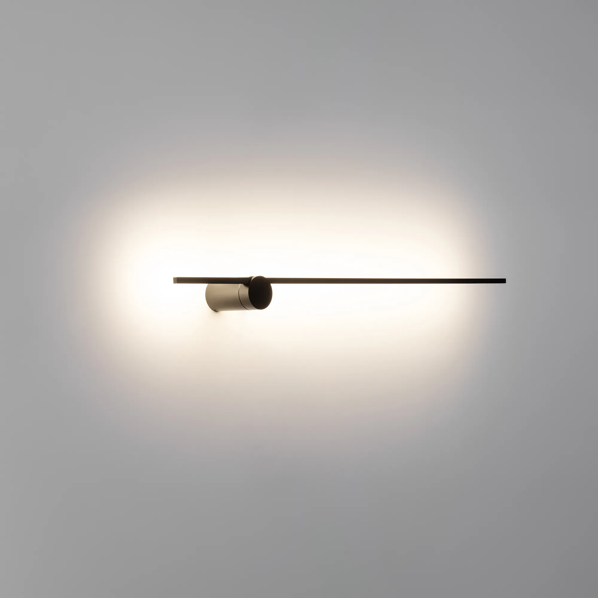 Декоративный настенный поворотный светильник. Мощность 10 Вт, св. поток 370 лм, 37 лм/Вт, дневной 4000 K, CRI>80, угол 110°, напряжение питания 230 В. Черный фигурный корпус из алюминия, экран из поликарбоната , степень защиты IP20. Размер: длина 900 мм, ширина 55 мм, высота 102 мм. Монтаж накладной. Драйвер 5-12 В, 700 мА, пульсация <0,5%. Возможность поворота светоизлучателя на 355 градусов.