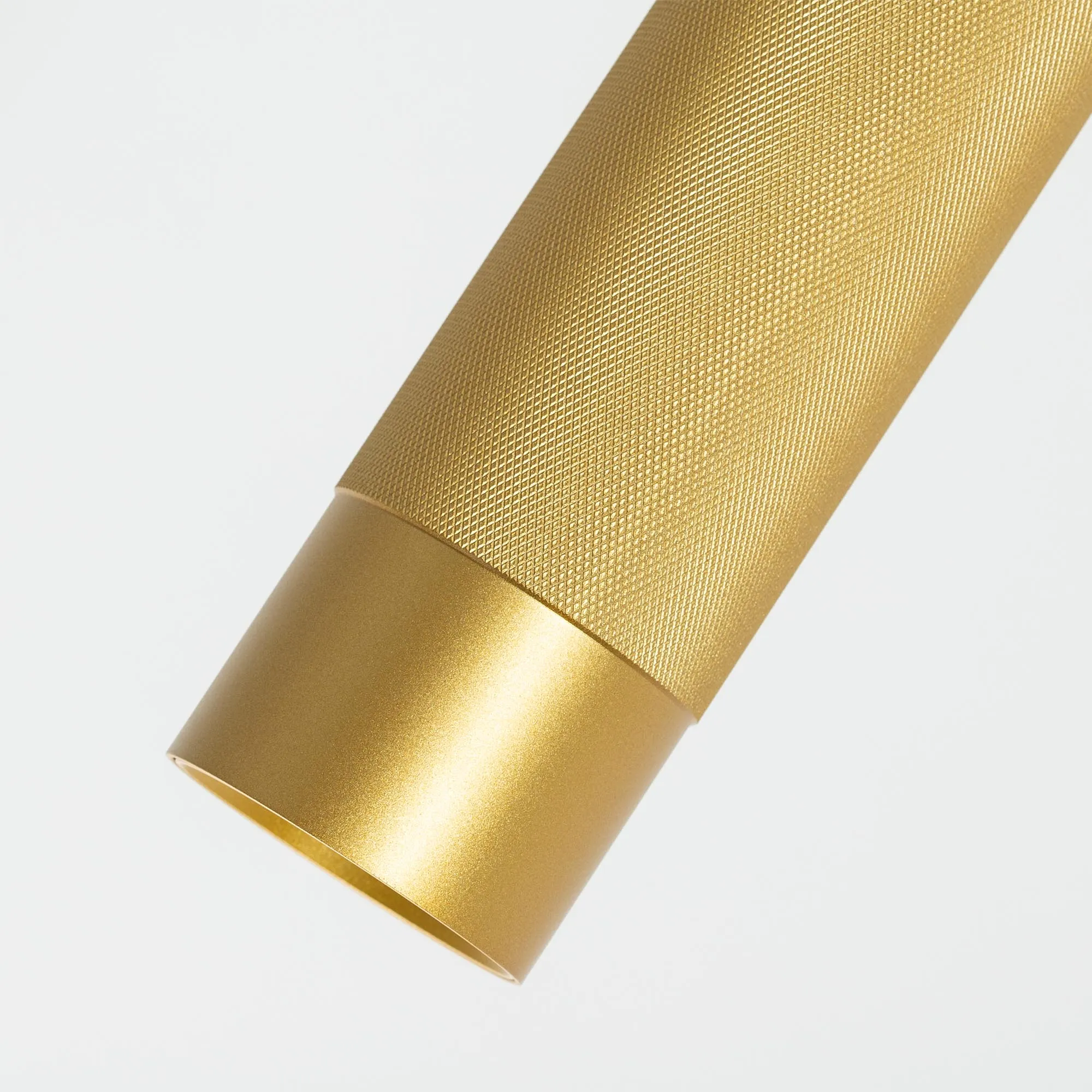 Подвесной светильник. Мощность 13 Вт, св. поток 732 лм, 57 лм/Вт, теплый 3000 K, CRI>90, угол 50°, напряжение питания 230 В. Золотой круглый корпус из алюминия, рефлектор PC, степень защиты IP20. Размер: диаметр 70 мм, высота 300 мм, длина подвеса 1500 мм, размер чаши: диаметр 65 мм, высота 30 мм. Монтаж подвесной. Драйвер 24-42 В, 300 мА, пульсация <1%.