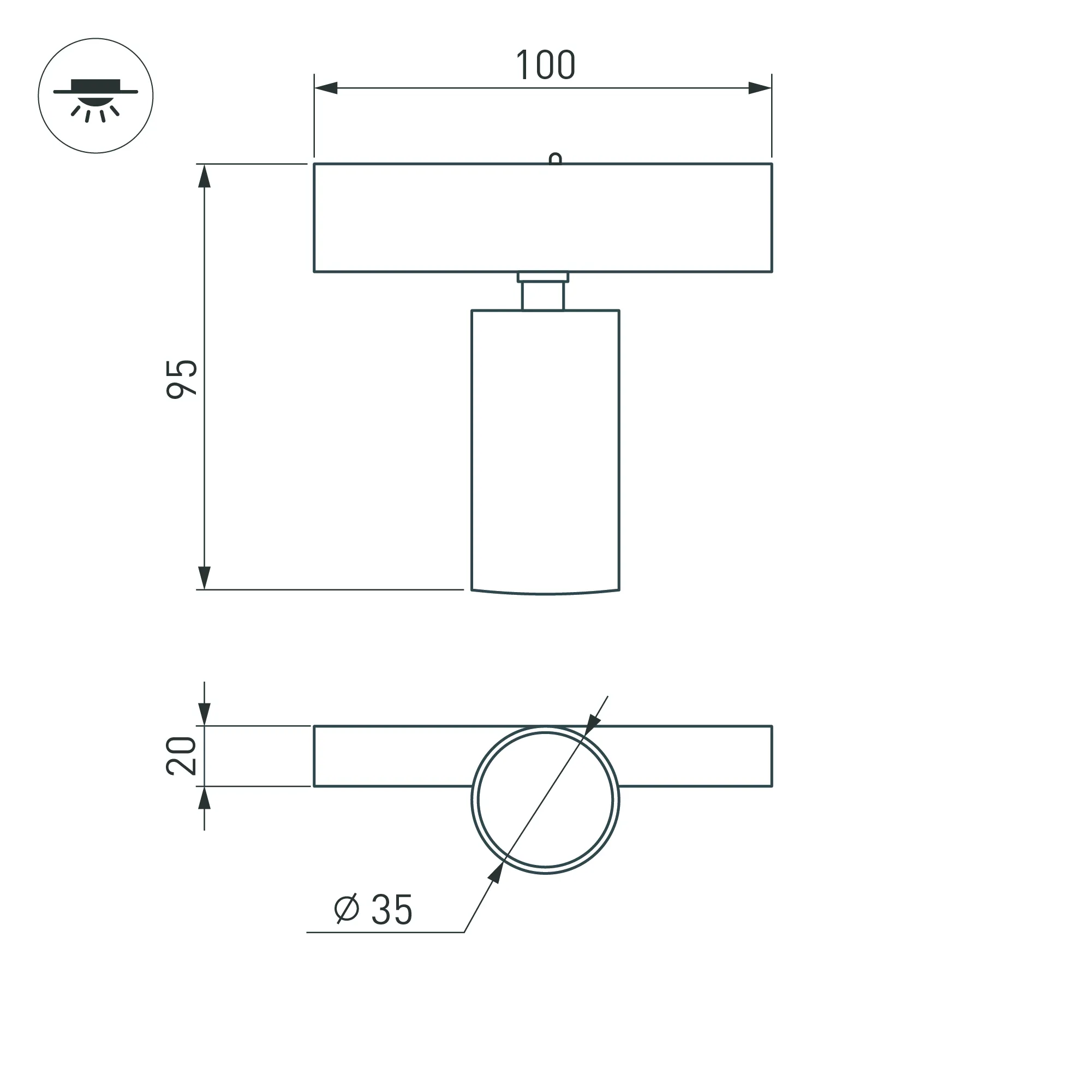 Светильник поворотный для магнитных треков шириной 25 мм, 5 Вт. Цвет свечения ТЕПЛЫЙ 3000K, световой поток 350лм, угол 30°, CRI>90. Корпус прямоугольный, металл, цвет черный, IP20. Размеры LxWxH 100x20x95 мм. Входное напряжение DC24V, мощность 5 Вт. Драйвер DС24V/AC230V поставляется отдельно.Диаметр светоизлучающего модуля 35 мм. Диммируется только с 026407, 027633.