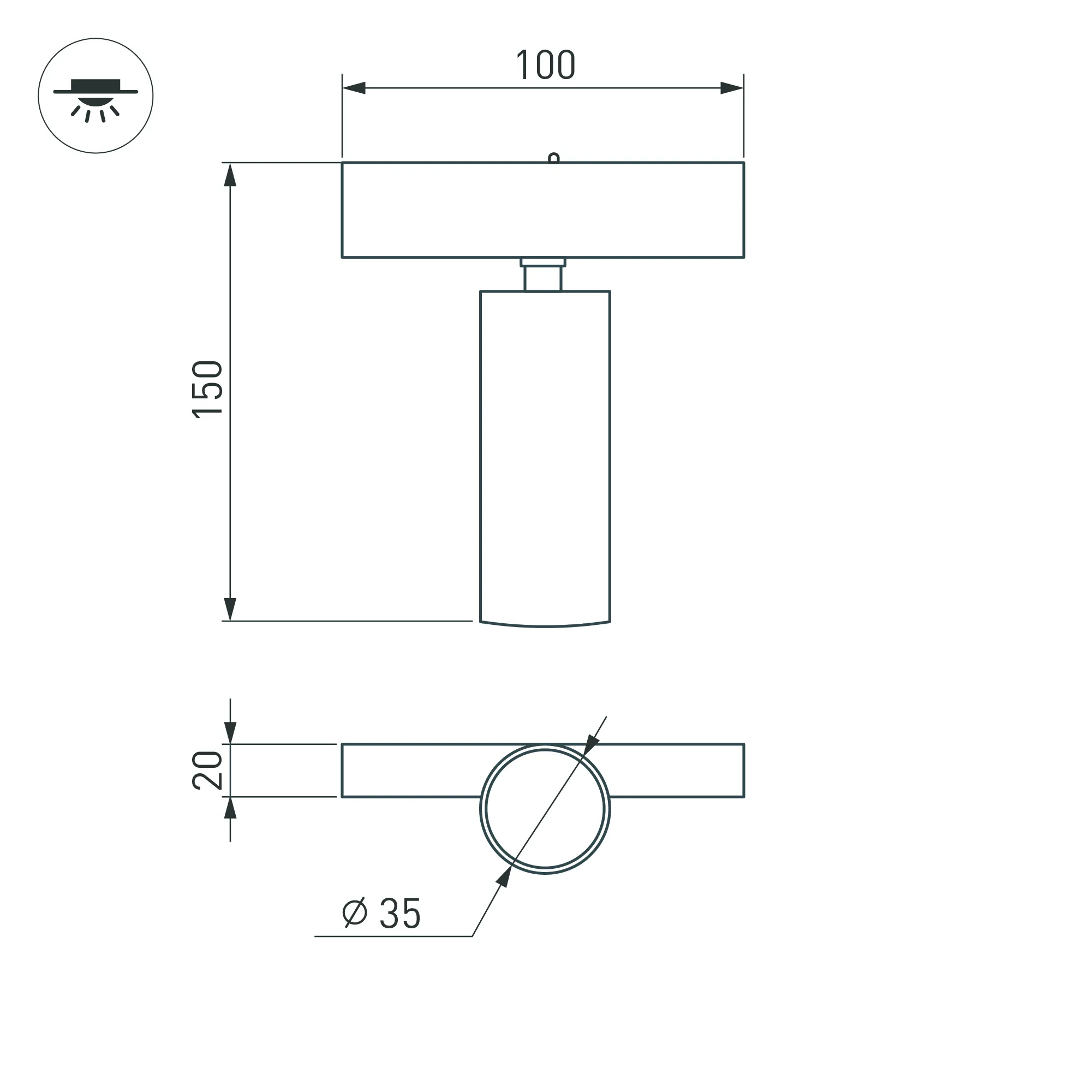 Светильник поворотный для магнитных треков шириной 25 мм, 12 Вт. Цвет свечения ТЕПЛЫЙ 3000K, световой поток 840лм, угол 30°, CRI>90. Корпус прямоугольный, металл, цвет черный, IP20. Размеры LxWxH 100x20x150 мм. Входное напряжение DC24V, мощность 12 Вт. Драйвер DС24V/AC230V поставляется отдельно.Диаметр светоизлучающего модуля 35 мм.
