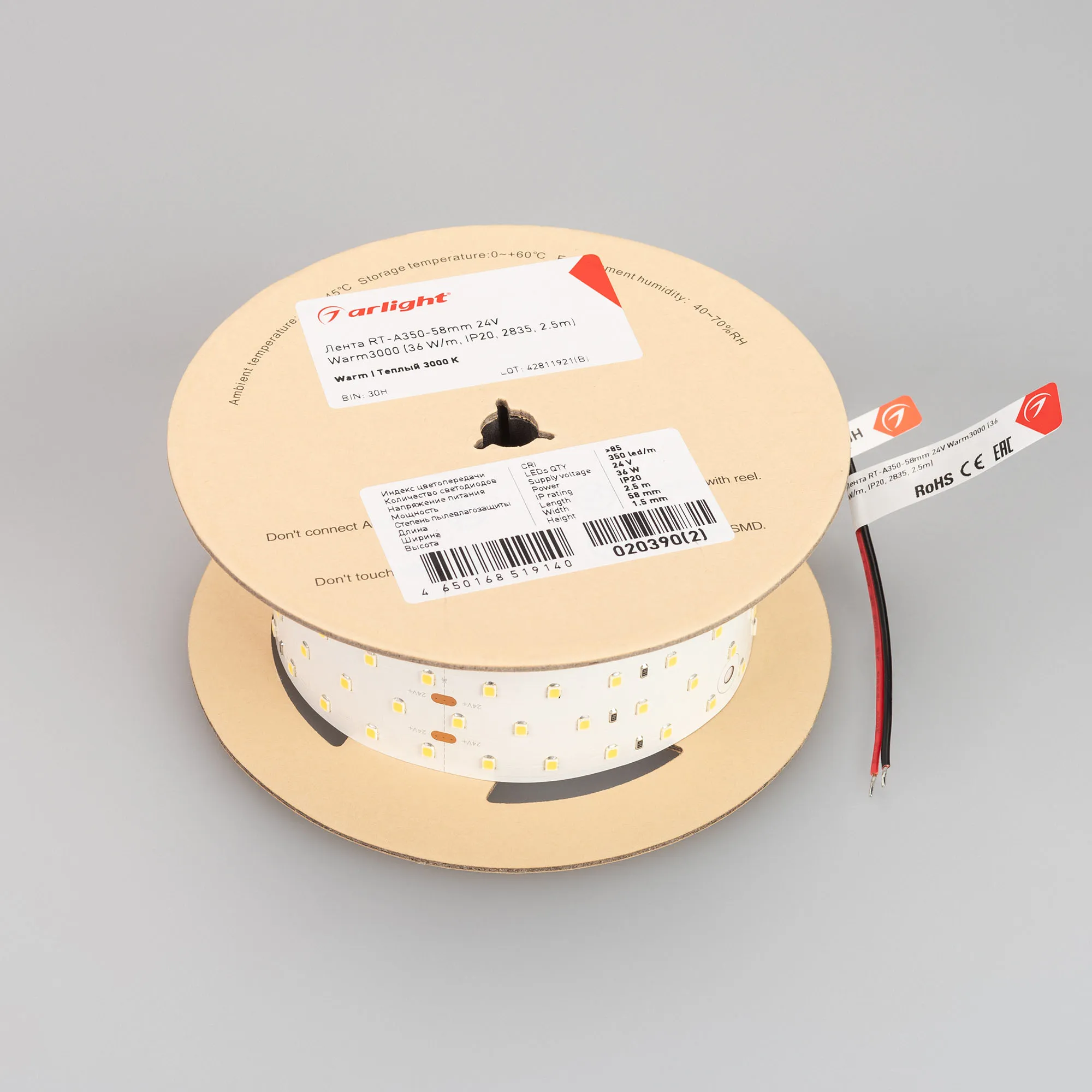 В магазине Арлед Маркет Вы можете купить "Лента светодиодная RT-A350-58mm 24V Warm3000 (36 W/m, IP20, 2835, 2.5m) (Arlight, Открытый)"