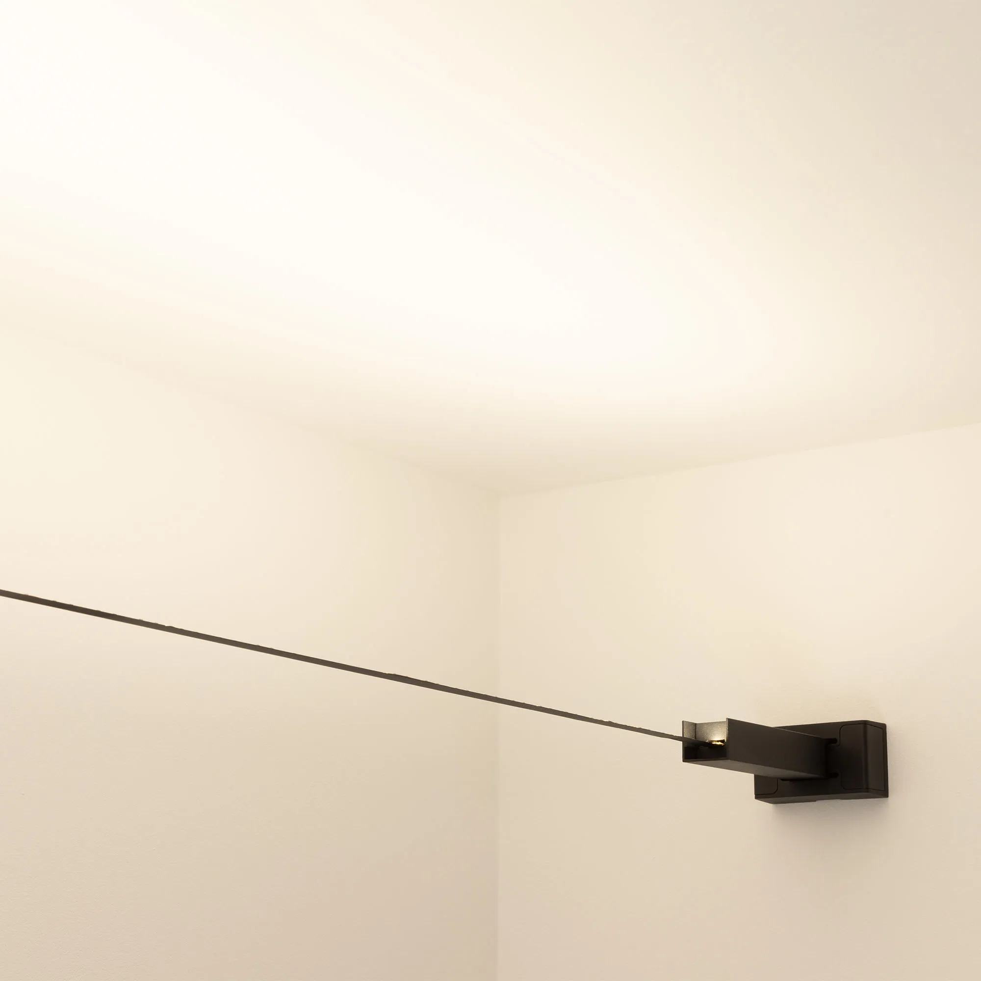 Лента-трос STINGRAY. В комплект входят: открытая светодиодная стабилизированная лента IC-A120, стальное полотно для ленты 10 м, ширина 15 мм, 2 настенных крепления, аксессуары для фиксации и монтажа. Цвет - черный..