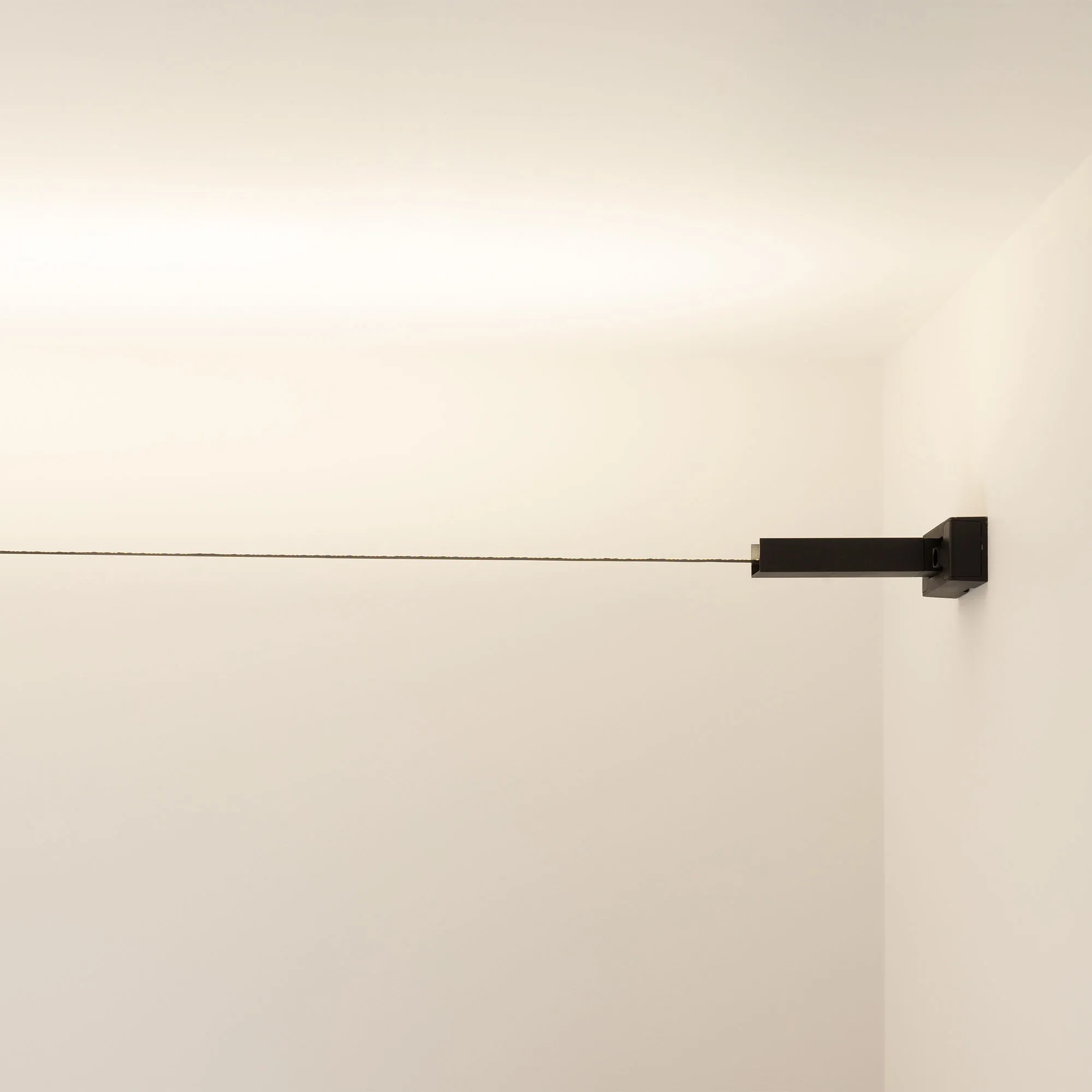 Лента-трос STINGRAY. В комплект входят: открытая светодиодная стабилизированная лента IC-A120, стальное полотно для ленты 10 м, ширина 15 мм, 2 настенных крепления, аксессуары для фиксации и монтажа. Цвет - черный.