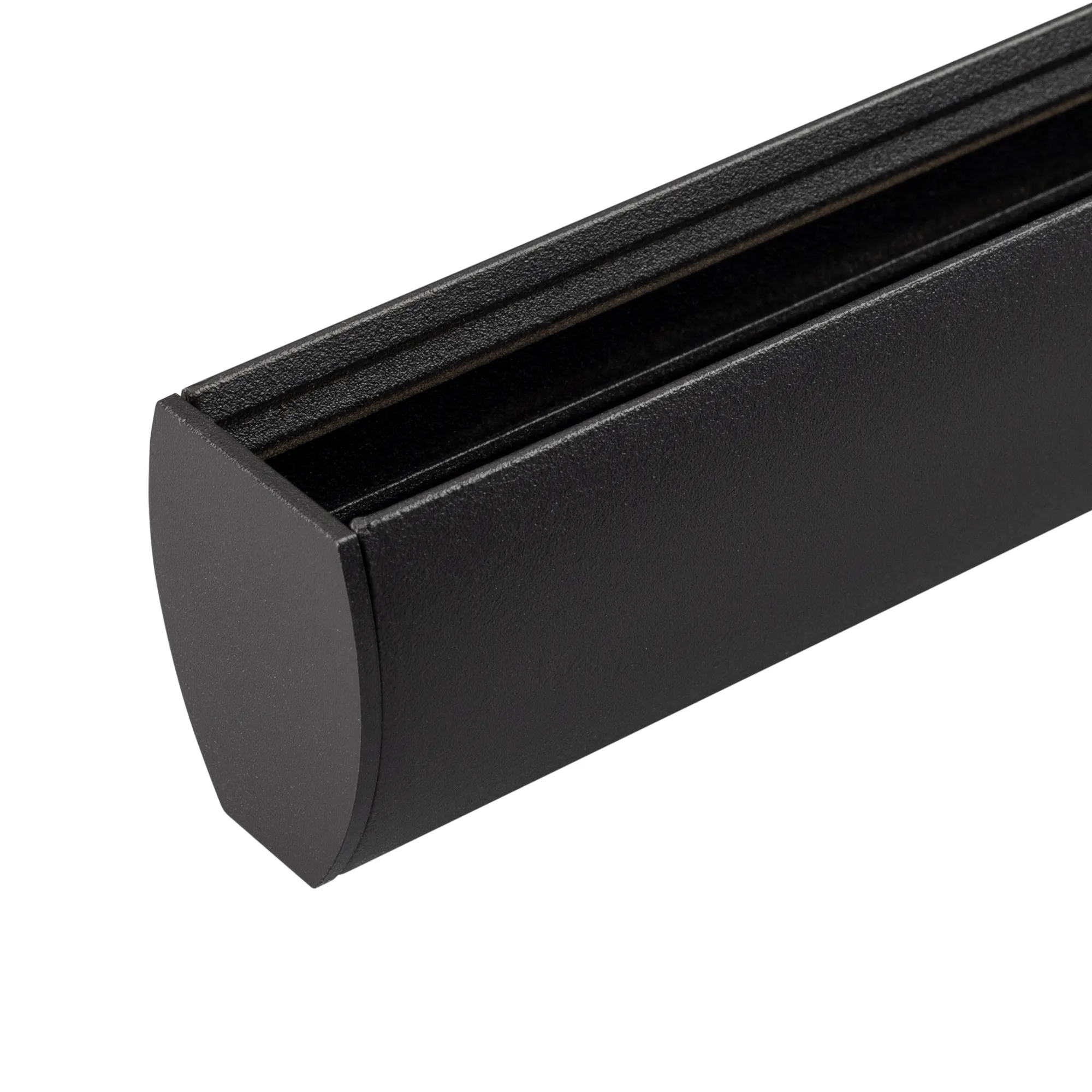 Подвесной, накладной круглый магнитный трек, длина 2000 мм. DC24V. Материал алюминий, цвет черный. Две заглушки в комплекте. Размер ДxШxВ: 2003x30x40 мм. Размер (с учетом заглушек) Аксессуары для подвесного монтажа (034751) в комплект не входят.