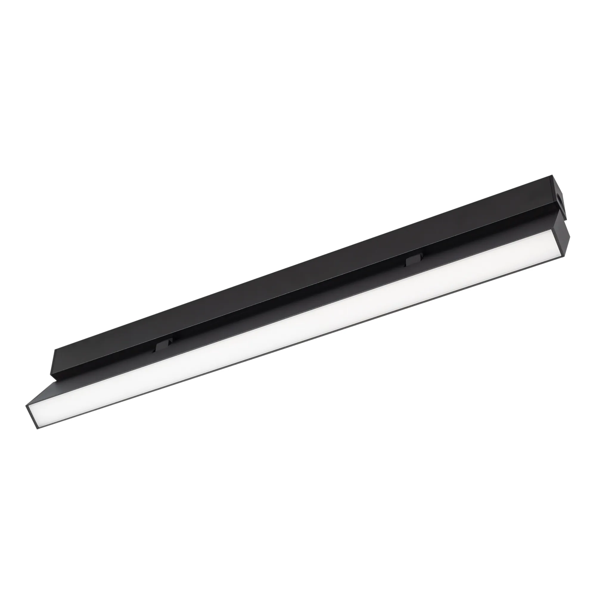 Светильник поворотный для магнитных треков шириной 25мм, 12Вт. Цвет свечения ДНЕВНОЙ 4000K, световой поток 780лм, угол 100°, CRI>90. Корпус прямоугольный, металл, цвет черный, IP20. Размеры LxWxH 404x20x46мм. Входное напряжение DC24V, мощность 12Вт. Драйвер DС24V/AC230V поставляется отдельно. Диммируется только с 026407, 027633.