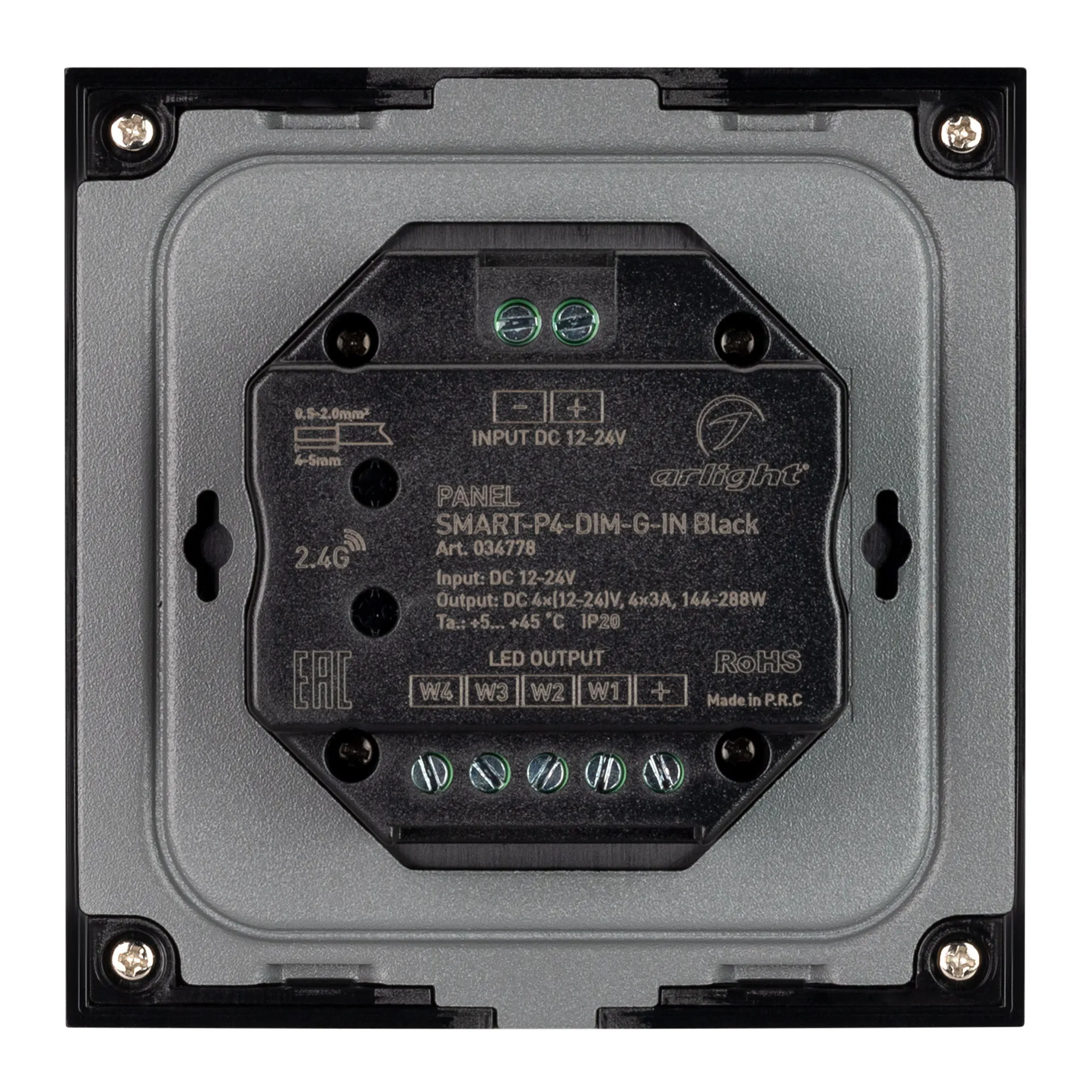 В магазине Арлед Маркет Вы можете купить "Панель SMART-P4-DIM-G-IN Black (12-24V, 4x3A, Sens, 2.4G) (Arlight, IP20 Пластик, 5 лет)"