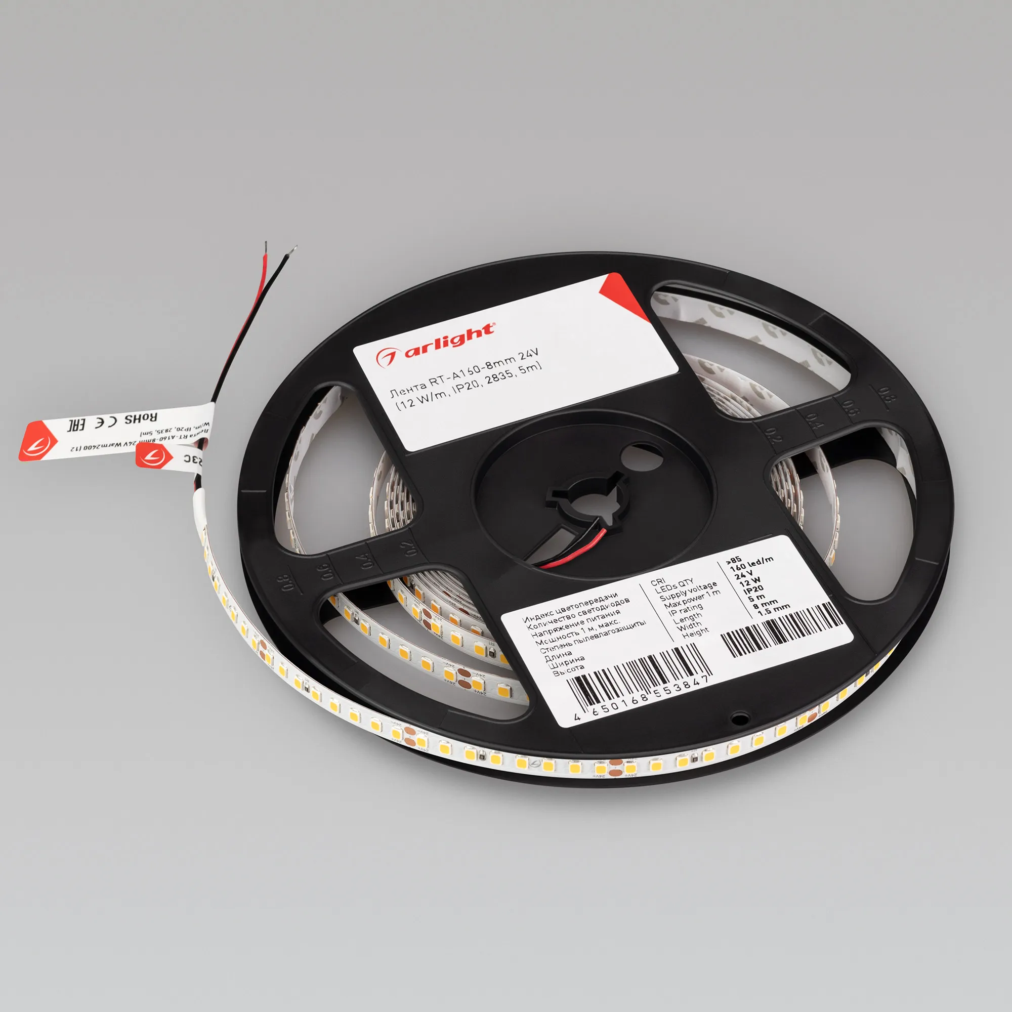 В магазине Арлед Маркет Вы можете купить "Лента светодиодная RT-A160-8mm 24V Warm2700 (12 W/m, IP20, 2835, 5m) (Arlight, 12 Вт/м, IP20)"