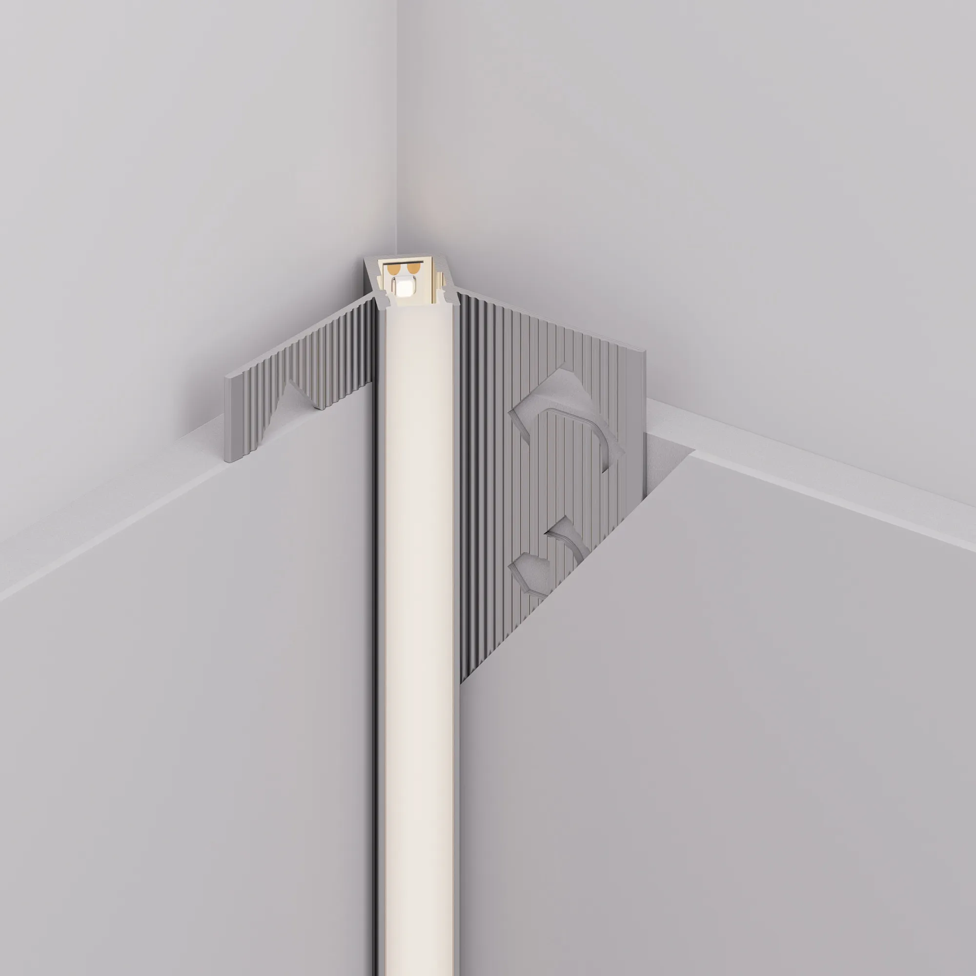Под заказ от 1600 м. Алюминиевый анодированный угловой профиль для светодиодных лент и линеек, под строительную отделку или плитку. Фиксируется при помощи строительной смеси. Декоративная контурная подсветка внутренних углов стен и конструкций. Габаритные размеры (L×W×H): 2000x40,3x24,3 мм. Ширина площадки для ленты 5,2 мм. Экраны, заглушки и другие аксессуары приобретаются отдельно. Цена за 1 метр.