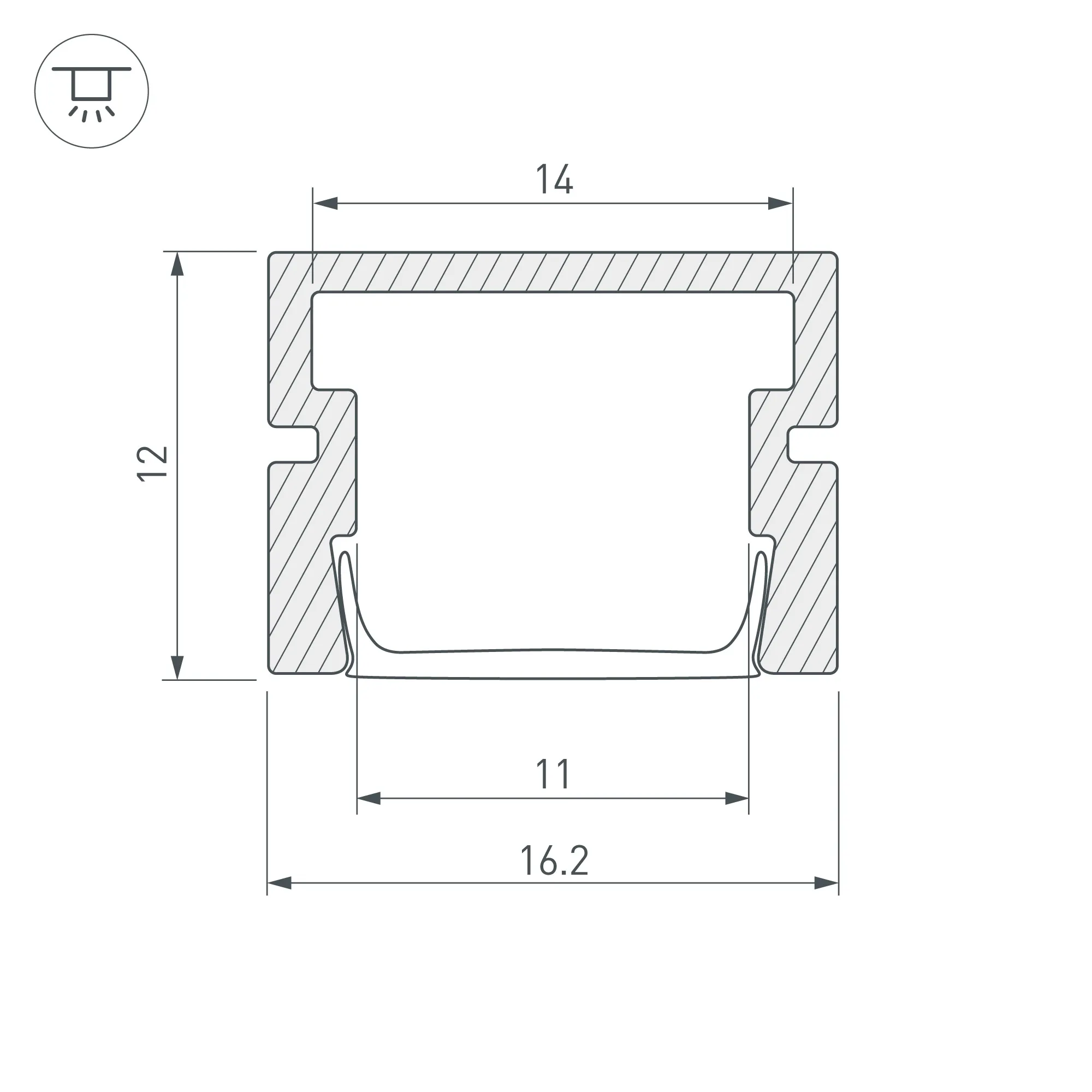 Алюминиевый анодированный профиль для светодиодных лент и линеек. Анодированный в чёрный цвет. Габаритные размеры (L×W×H): 2000x16,2x12 мм. Ширина площадки для ленты 14 мм. Экраны, заглушки и другие аксессуары приобретаются отдельно. Цена за 1 метр.