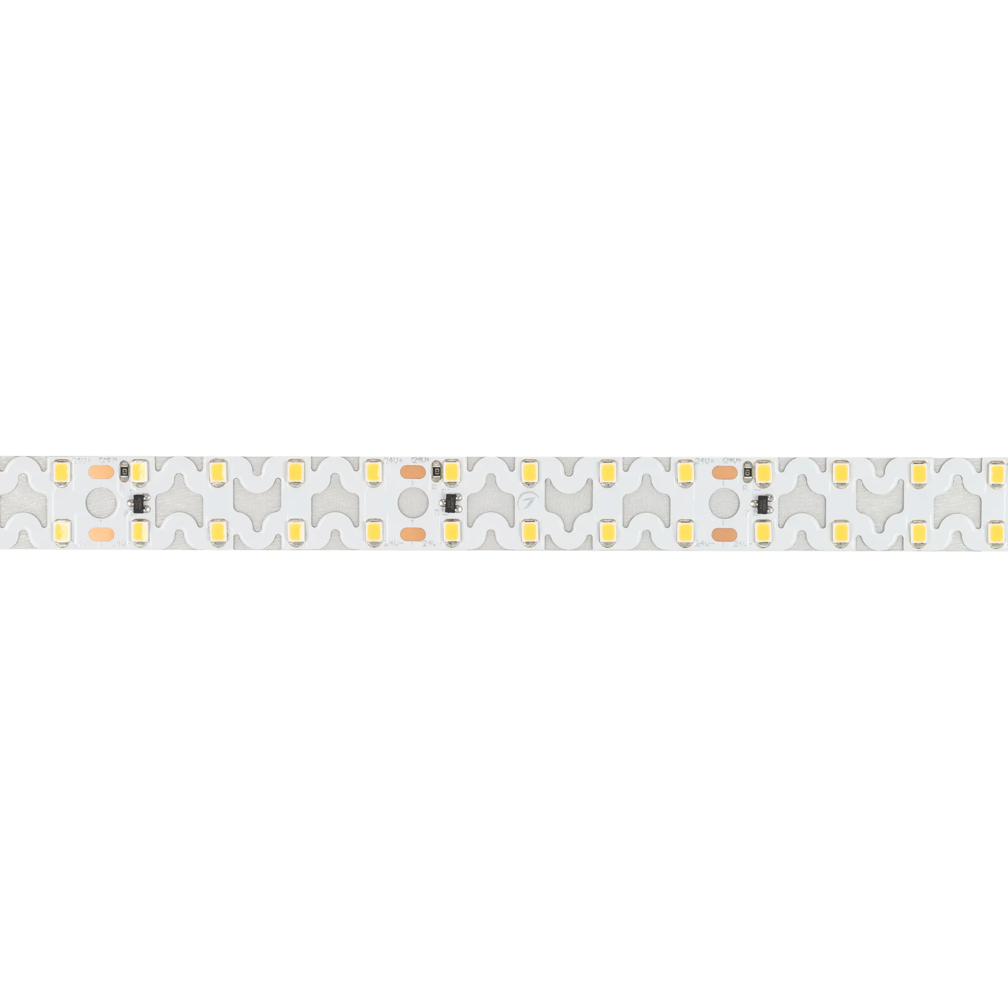 Гибкая светодиодная лента RZ серии A160 с фигурной платой в форме волны. Светодиоды SMD 2835, 160 шт/м, белая плата шириной 15 мм, скотч 3М. Цвет ТЕПЛЫЙ 3000K, индекс цветопередачи CRI>85, угол 120°. Питание 24 В, мощность 19.2 Вт/м (96 Вт на 5 м). Размеры 5000х15х1.5 мм. Мин. отрезок 50 мм, 8 светодиодов. Цена за 1 м.