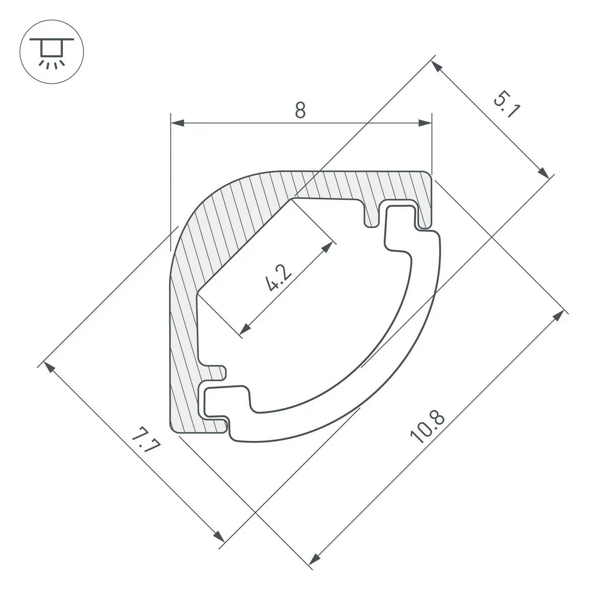 Алюминиевый анодированный угловой профиль для светодиодных лент и линеек. Габаритные размеры (L×W×H): 2000x8x8 мм (с экраном). Ширина площадки для ленты 4,2 мм. Экраны, заглушки и другие аксессуары приобретаются отдельно. Цена за 1 метр.