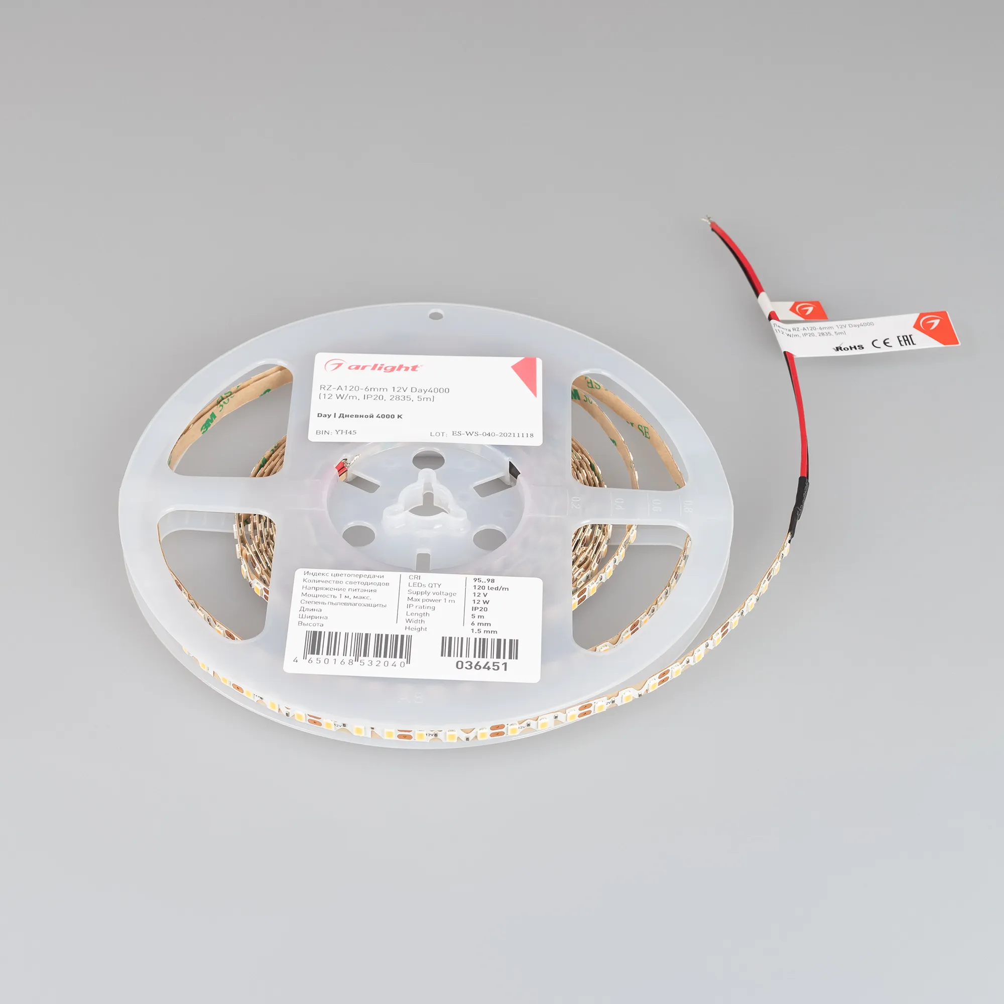 В магазине Арлед Маркет Вы можете купить "Лента светодиодная RZ-A120-6mm 12V Day4000 (12 W/m, IP20, 2835, 5m) (Arlight, 12 Вт/м, IP20)"