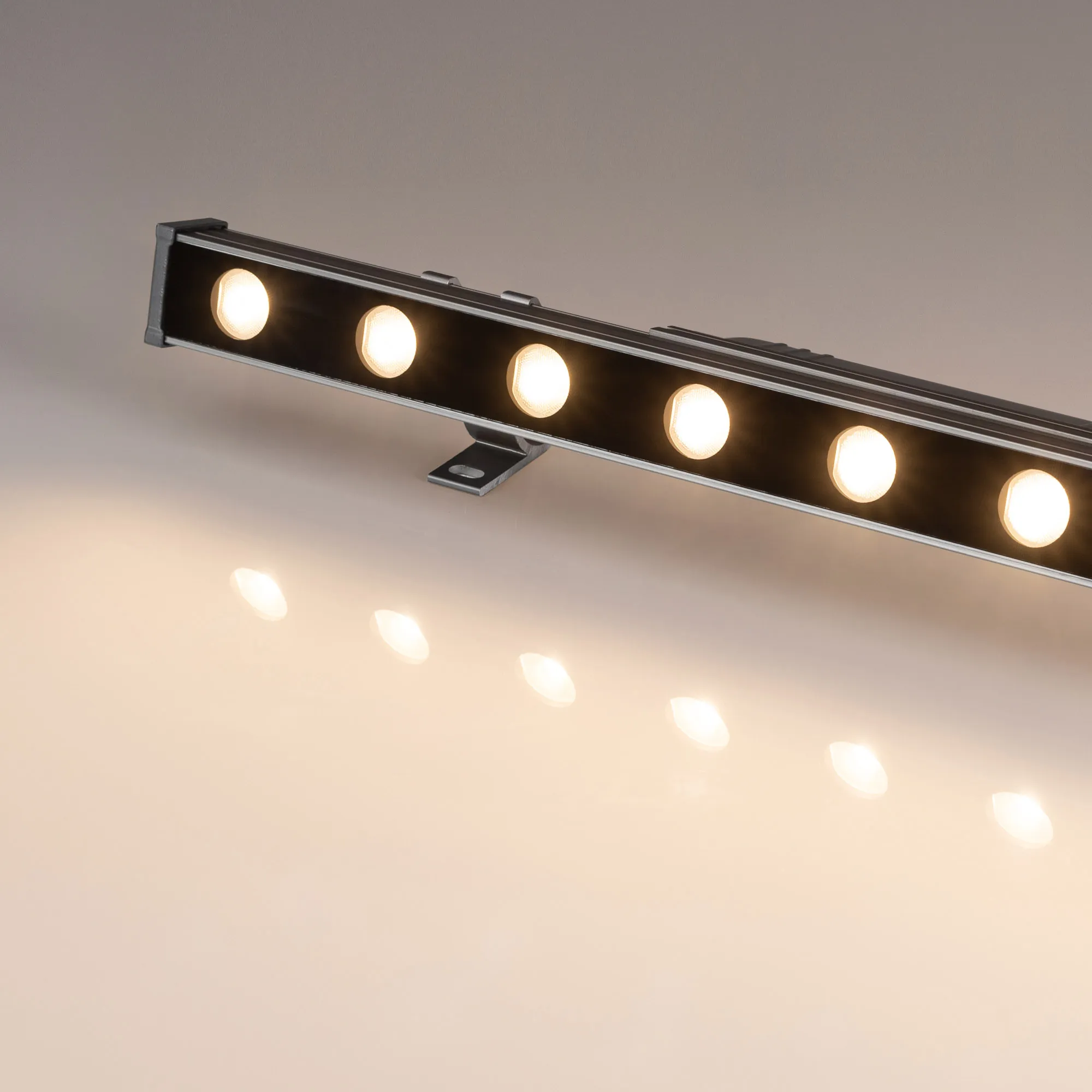 Ультратонкий линейный светодиодный прожектор. Мощность 9W, напряжение питания AC 230V. Светодиоды OSRAM 9 штук. Цвет светодиодов тёплый белый 3000K, световой поток 900 Lm, CRI=80, угол рассеивания 30°. Корпус: алюминиевый сплав и армированное стекло. Цвет корпуса серый, степень влагозащиты IP65. Габариты 500x40x30мм.