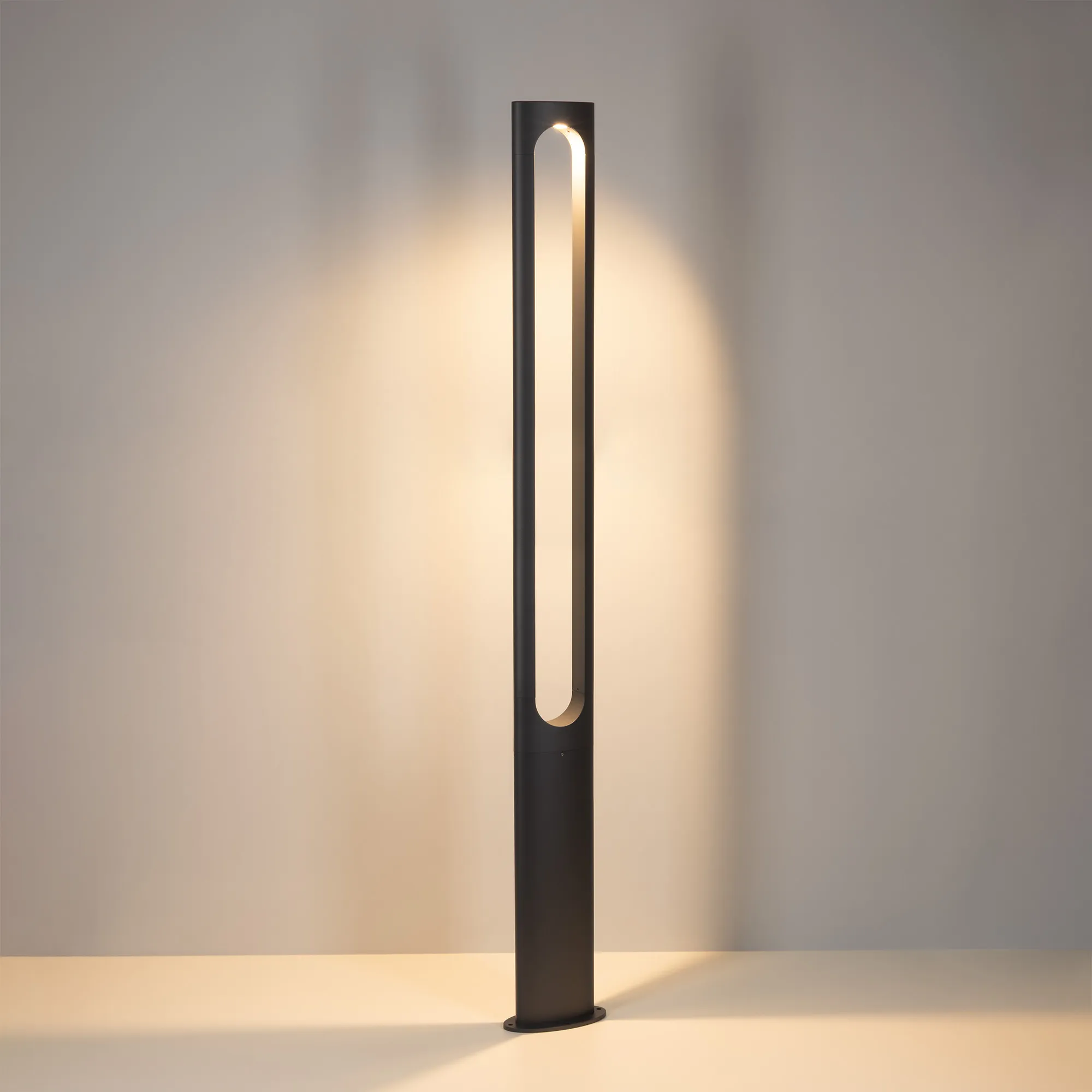 Поставка под заказ от 100 шт. Уличный светодиодный светильник для подсветки дорожек. Мощность 18 Вт, св. поток 1550 лм, 86 лм/Вт, теплый 3000 K, CRI>80, угол 328°, напряжение питания 230 В. Темно-Серый фигурный корпус из алюминия, экран поликарбонат, степень защиты IP65. Размер: длина 230 мм, ширина 120 мм, высота 2000 мм. Монтаж накладной. Драйвер 35-42 В, 500 мА, пульсация <2%.
