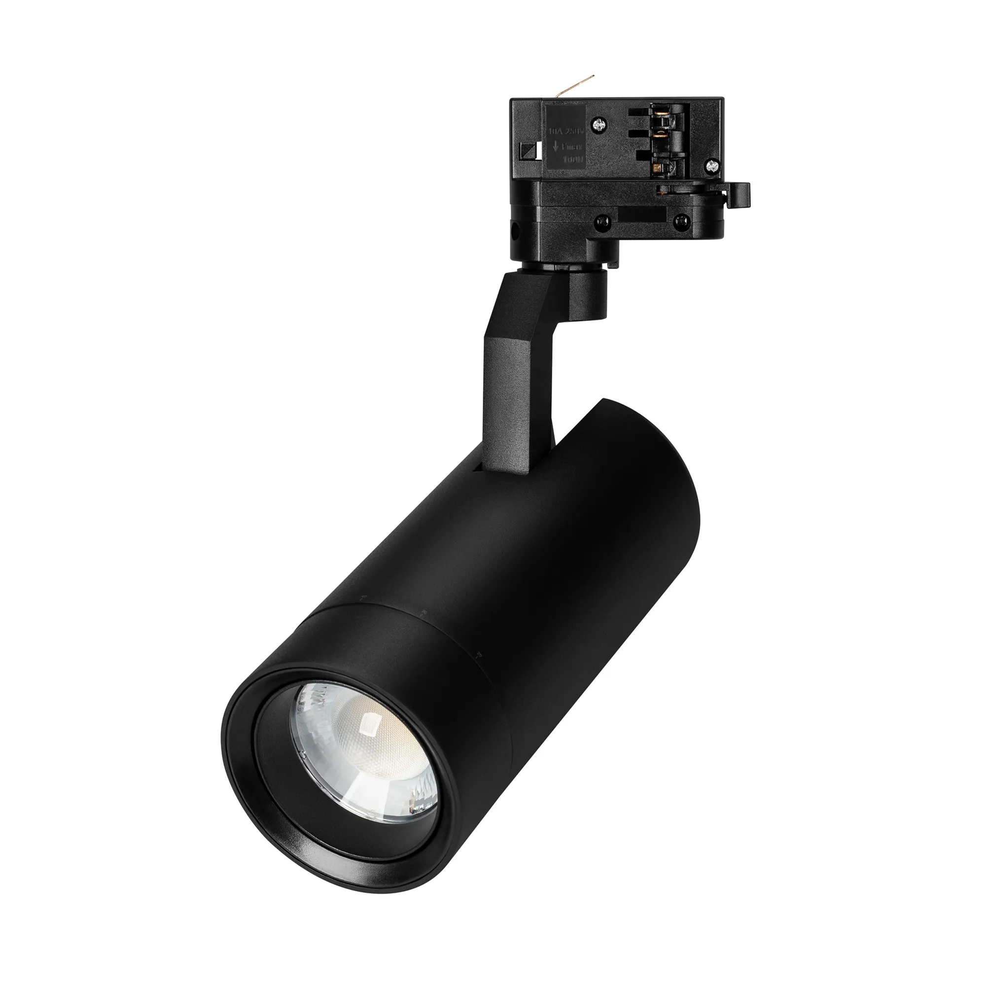 Светильник для треков/шин 4 провода, 20Вт. Цвет свечения меняется в диапазоне 3000К-6000К (возможность изменения цветовой температуры при помощи диммера DALI), световой поток 1500 лм, 74 лм/Вт, регулируемый угол 20-60°, CRI>90. Корпус круглый, металл, цвет черный, IP20. Размеры DxL Ø80x1816мм.. Входное напряжение AC220-240V, мощность 20Вт. Драйвер встроенный 12-54 В, 500 мА. Совместим только с шинопроводом серии С.