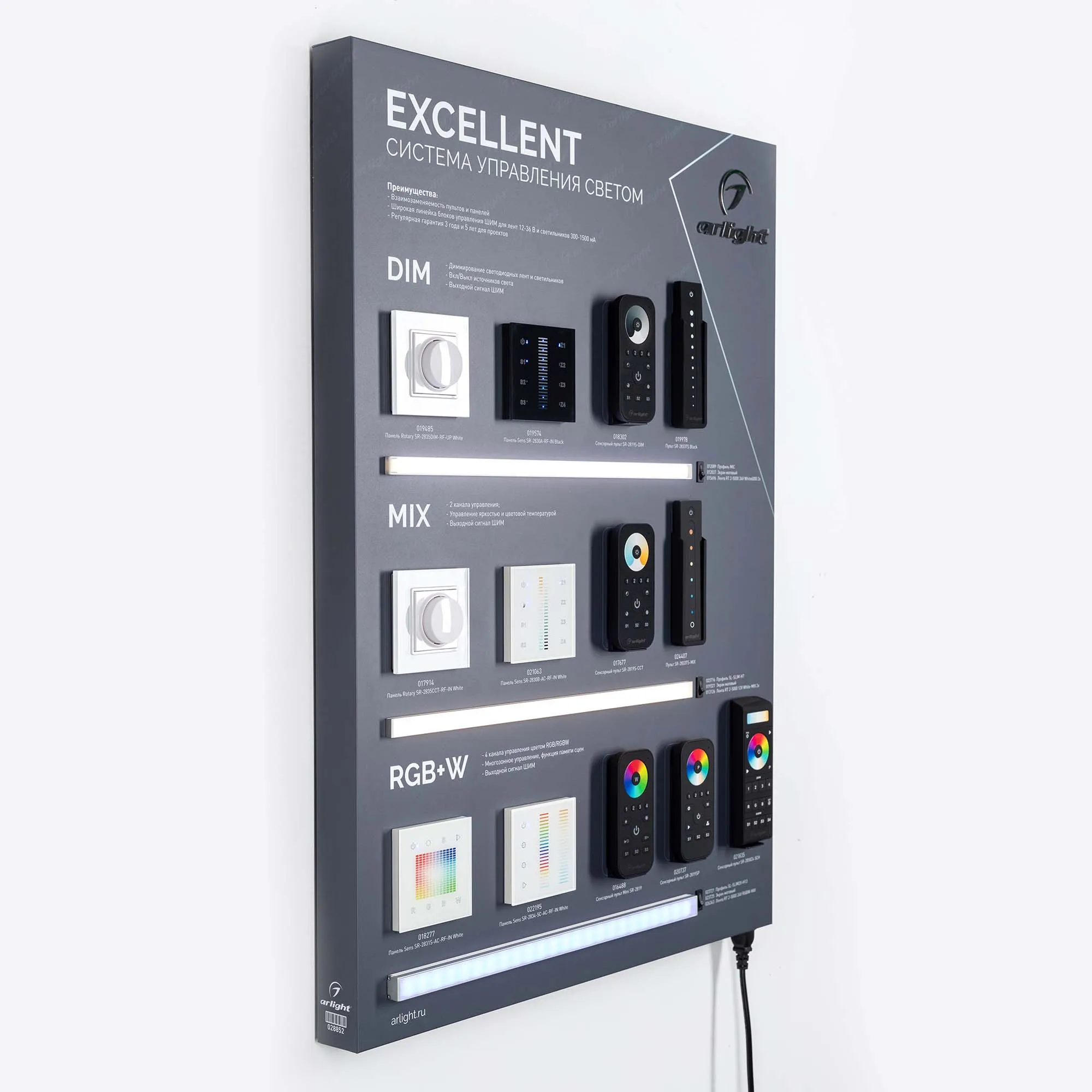 Наши специалисты знают все о продукции Arlight и с радостью помогут Вам выбрать комплектующие к товару "Стенд Системы Управления Excellent Arlight 830x600mm (DB 3мм, пленка, лого) (Arlight, -)", или другие товары из раздела "Управление светом".