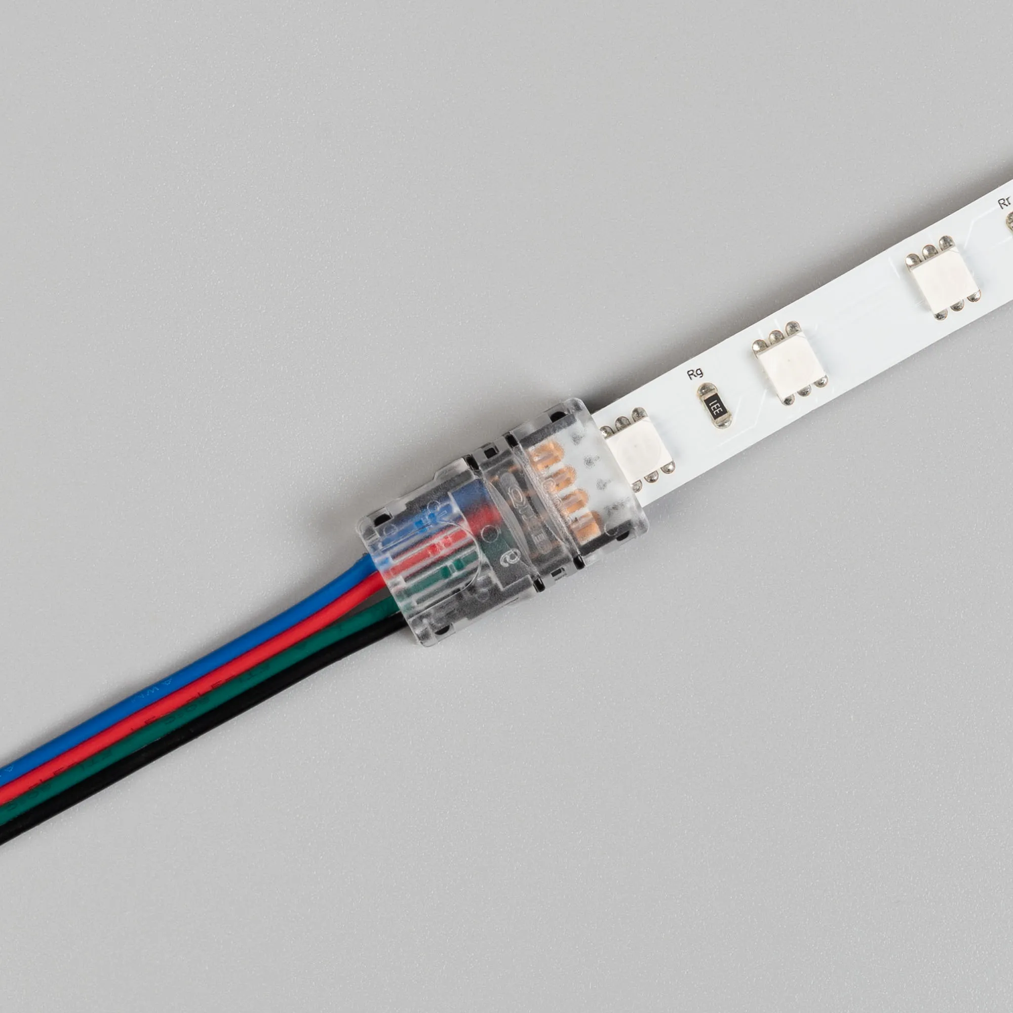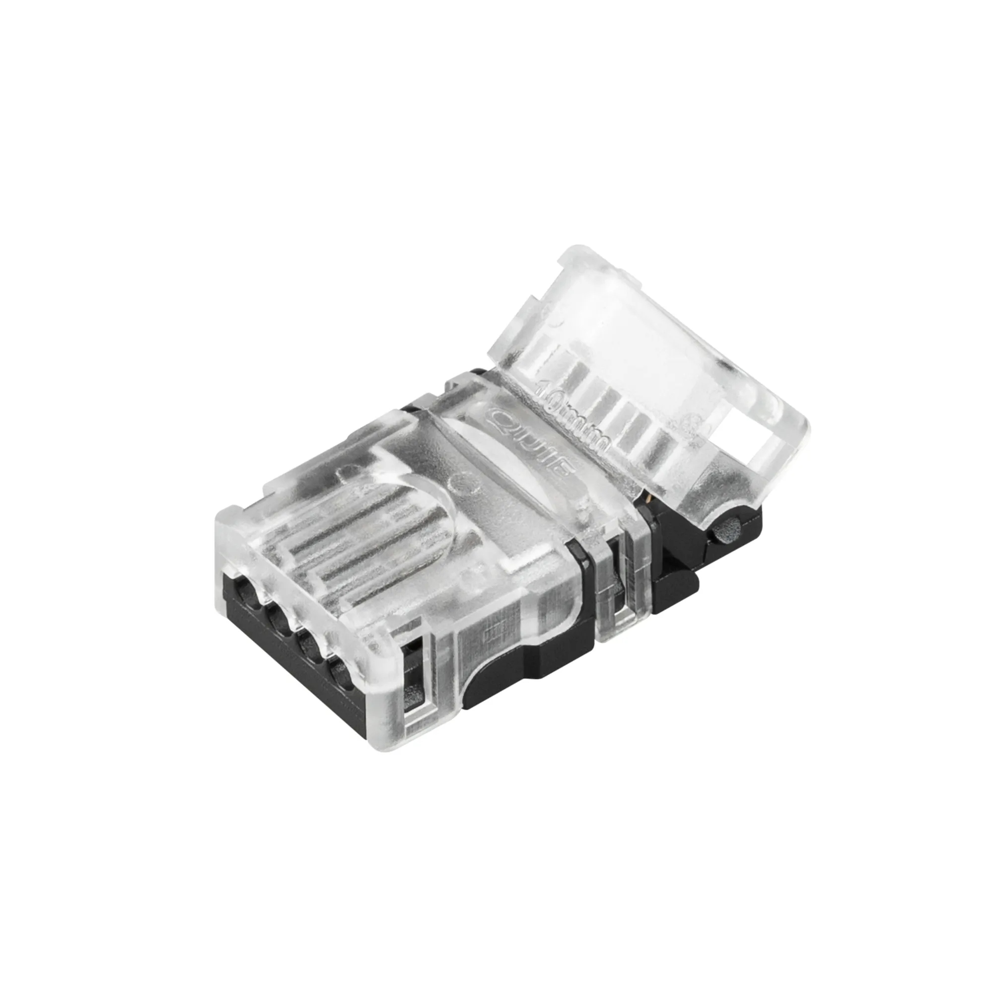 Одиночный коннектор (без провода) для подключения питания к открытым RGB лентам шириной 10 мм. Очистка провода питания (0,5-1,0 мм2) от изоляции не требуется. Материал - прозрачный пластик. Максимальный допустимый ток 3 А, напряжение 3-24 В, степень защиты IP33. Цена за 1 шт.