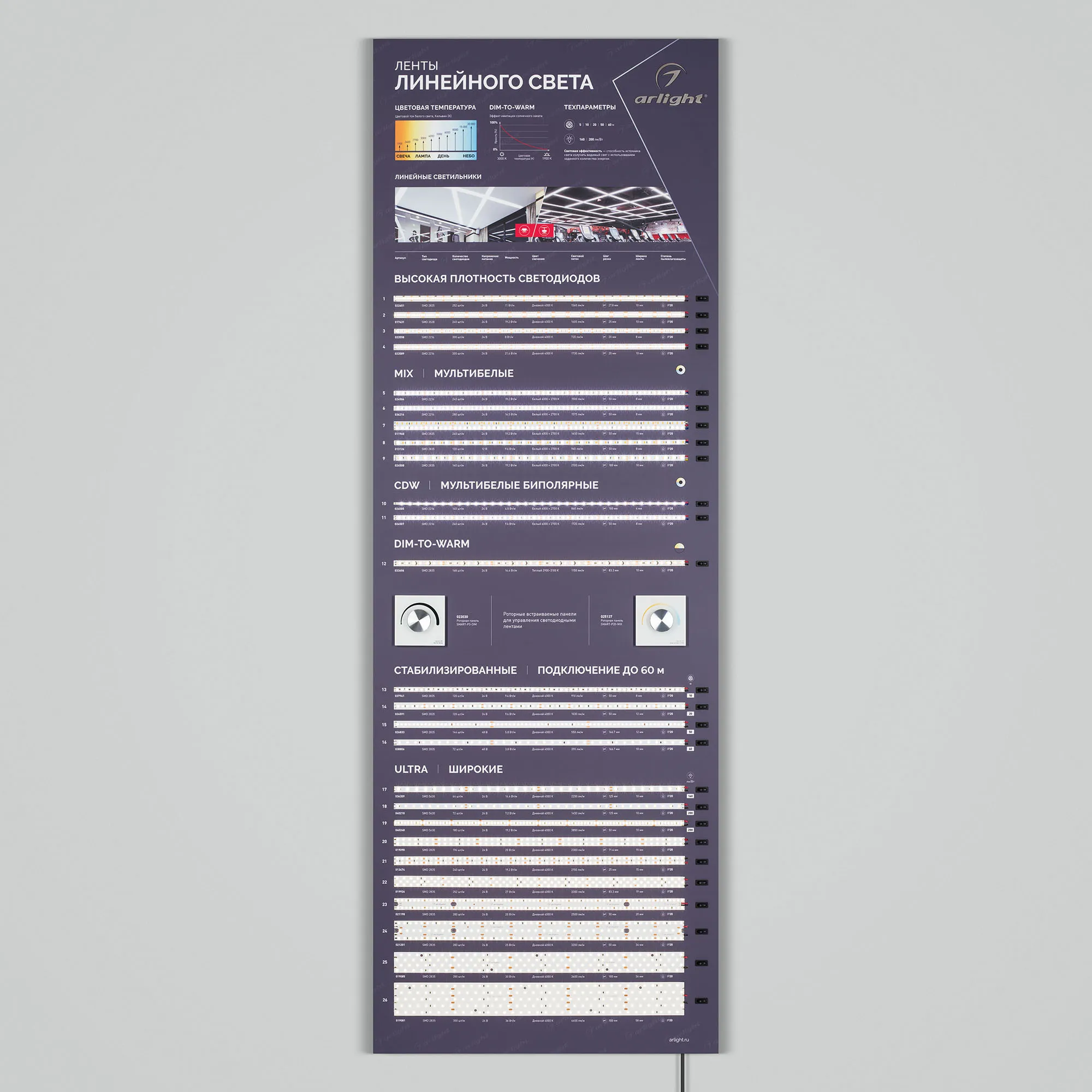 Наши специалисты знают все о продукции Arlight и с радостью помогут Вам выбрать комплектующие к товару "Стенд Ленты Линейного Света RT-LUX-E2-1760x600mm (v.2, DB 3мм, пленка, подсветка) (Arlight, -)", или другие товары из раздела "Светодиодные ленты".