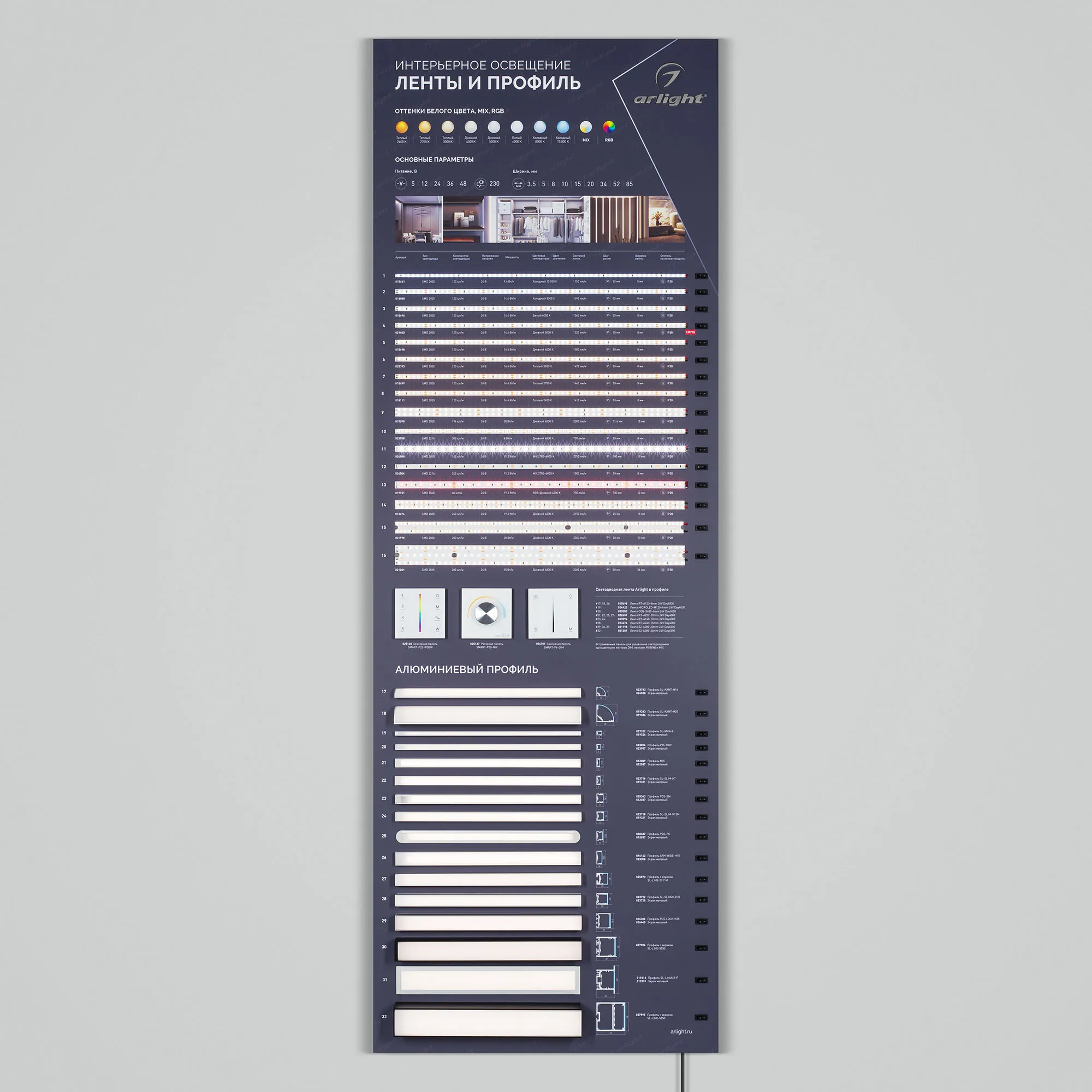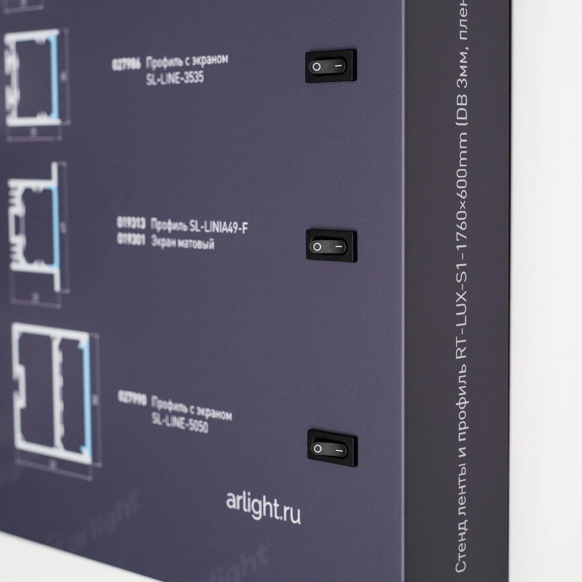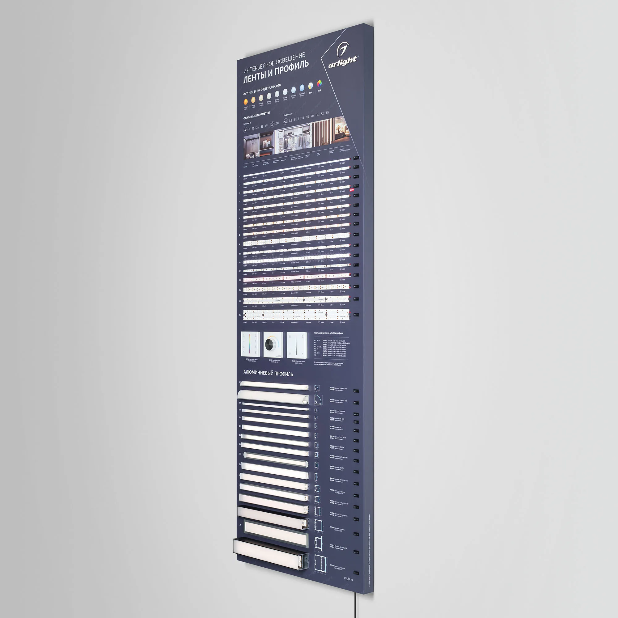 В магазине Арлед Маркет Вы можете купить "Стенд Ленты и Профиль RT-LUX-S1-1760x600mm (DB 3мм, пленка, подсветка) (Arlight, -)"