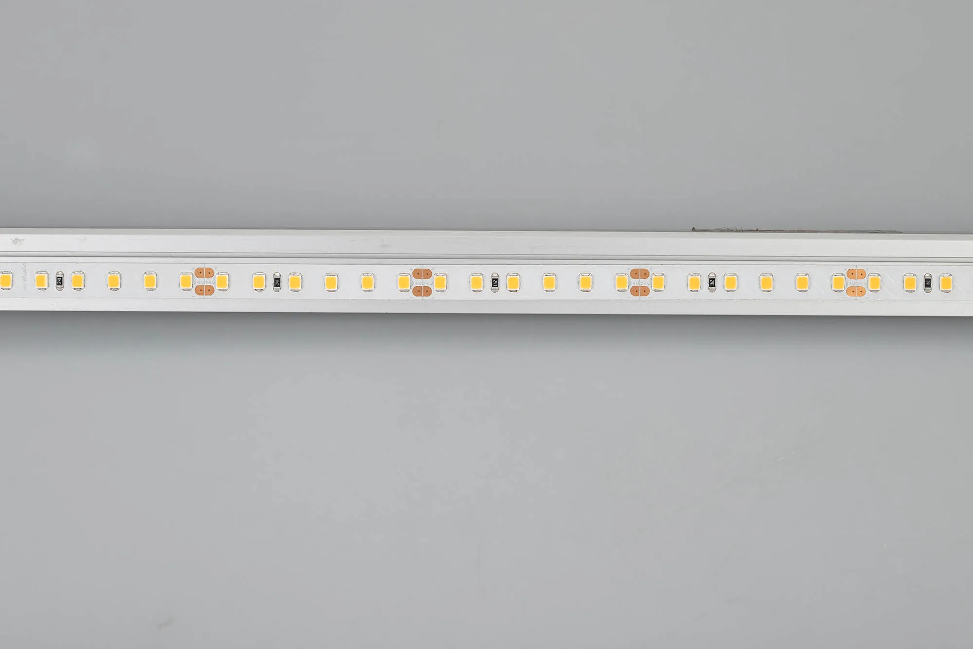 Гибкая лента CRI98, светодиоды smd 2835, 120 шт/м (600шт на 5м), белая плата 8 мм, скотч 3М. Цвет ТЁПЛЫЙ 2900-3100K. Питание 24V, мощность 14.4 Вт/м (72 Вт на 5м), угол 120°, высокая цветопередача CRI>95. Размеры 5000х8x1.5мм. Мин.отрезок 50мм, 6 светодиодов. Цена за 1м.