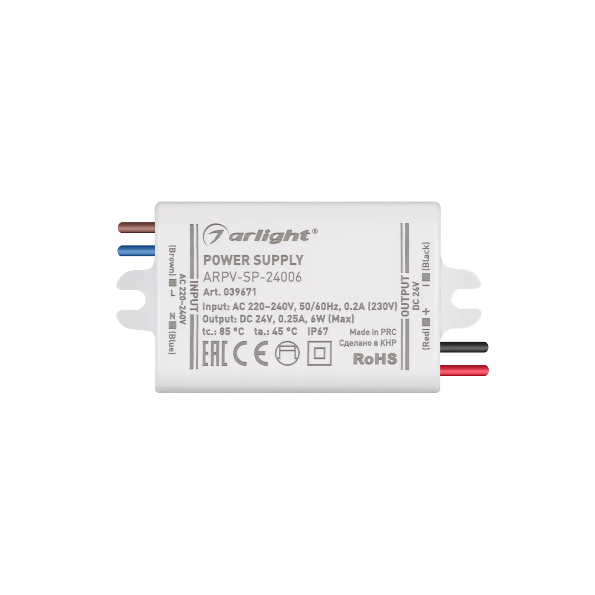 В магазине Арлед Маркет Вы можете купить "Блок питания ARPV-SP-24006 (24V, 0.25A, 6W) (Arlight, IP67 Пластик, 5 лет)"