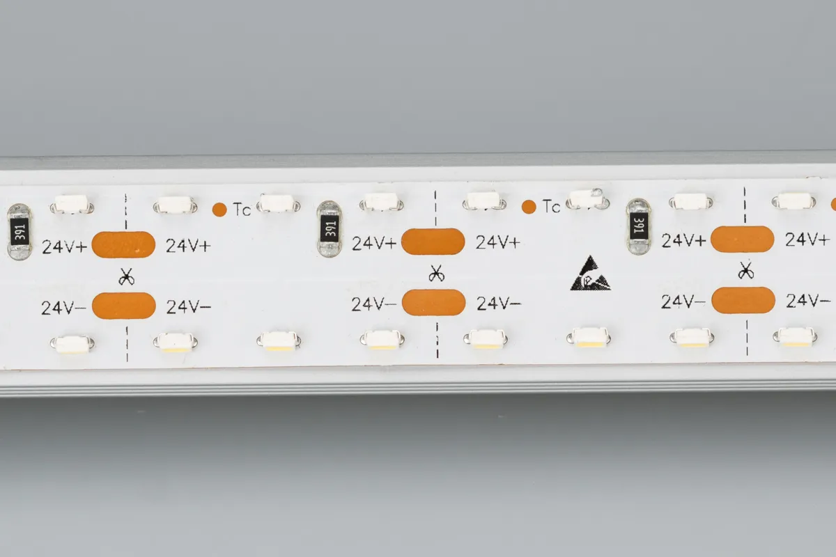 Лента LUX бокового свечения, 2 ряда светодиодов smd 3014, 240шт/м (1200шт на 5м), белая плата 15мм, скотч 3М. Цвет ДНЕВНОЙ 3900-4250K. Питание 24V, мощность 19.2 Вт/м (96 Вт на 5м), угол 120°, цветопередача CRI>80. Размеры 5000х15х2мм. Мин.отрезок 25мм, 6 светодиодов. Цена за 1м.