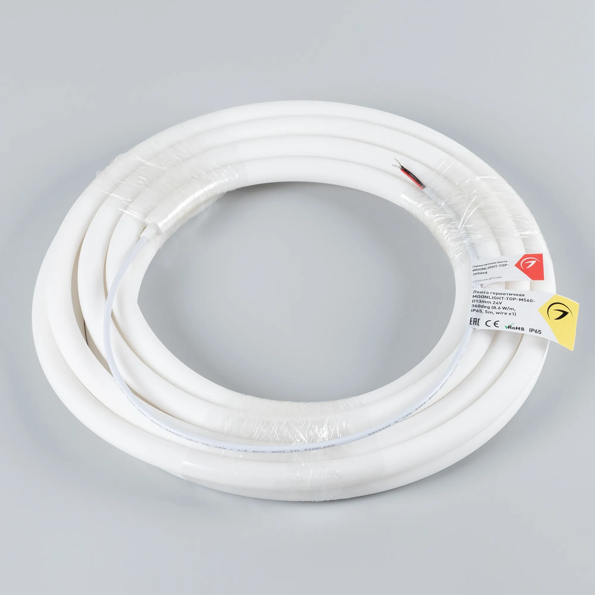 В магазине Арлед Маркет Вы можете купить "Лента светодиодная герметичная MOONLIGHT-TOP-M560-D13mm 24V Day4000 360deg (8.6 W/m, IP65, 5m, wire x1) (Arlight, Вывод прямой, 3 года)"