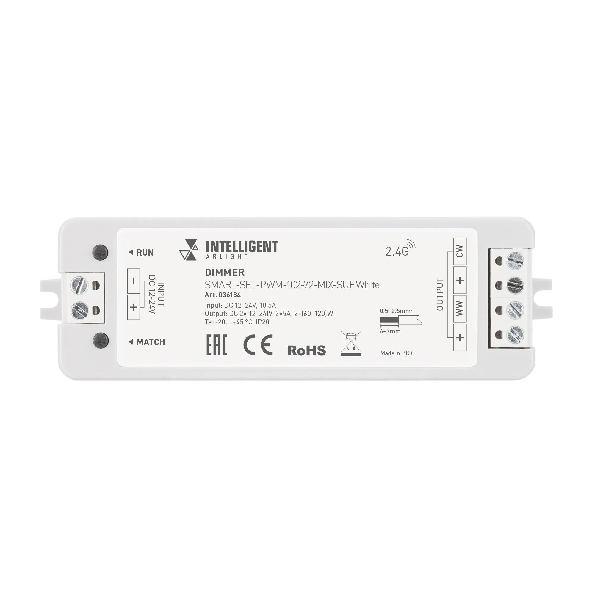 В магазине Арлед Маркет Вы можете купить "INTELLIGENT ARLIGHT Диммер SMART-SET-PWM-102-72-MIX-SUF White (12-24V, 2x5A, ПДУ RING 10кн, 2.4G) (IARL, IP20 Пластик, 5 лет)"