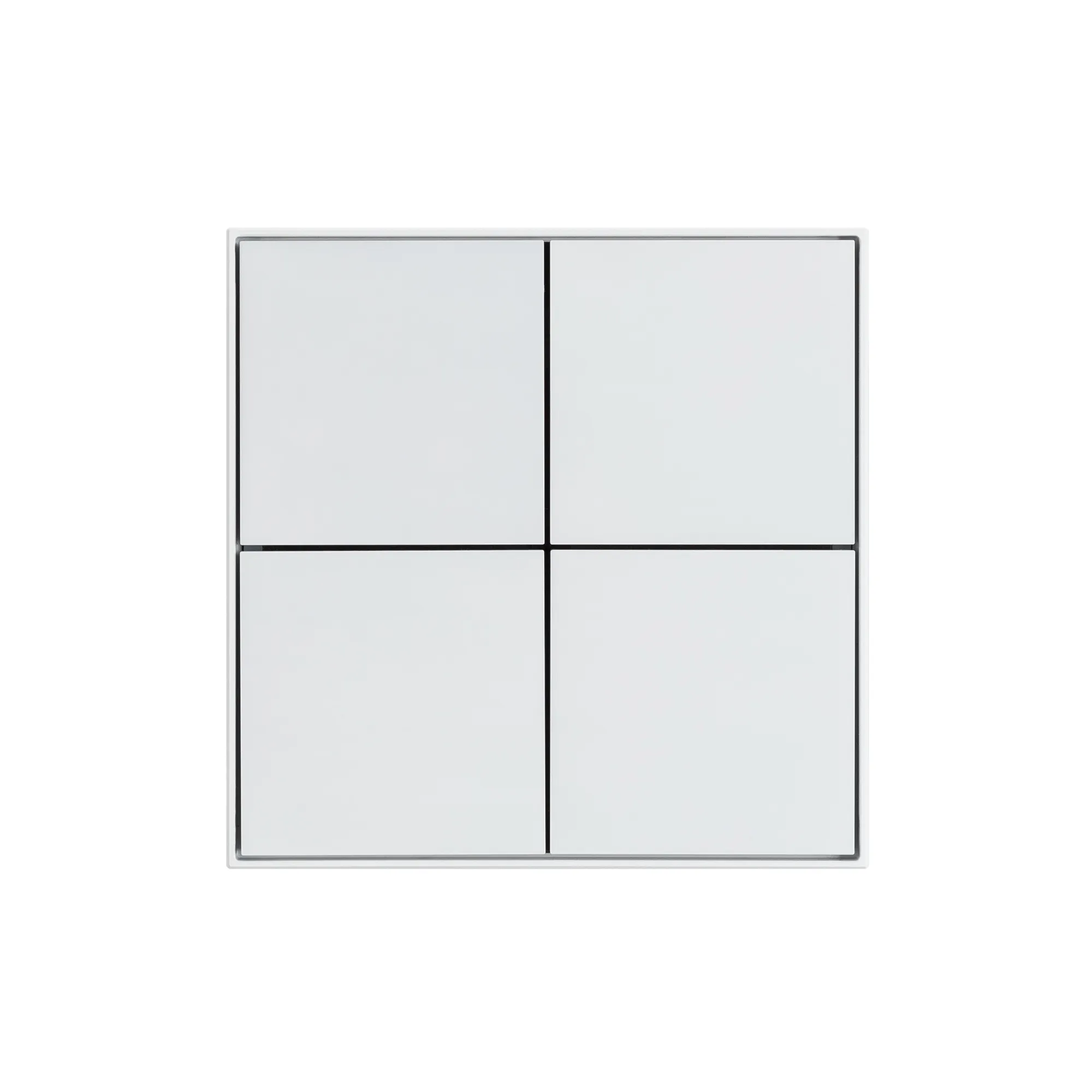 Универсальная многофункциональная встраиваемая настенная панель для систем KNX. 4 рокерные клавиши, 1 клавиша может выполнять функции 2-х клавиш. Тонкая рамка, материал - алюминий, отклик вибрацией, светодиодная индикация. Цвет корпуса - белый. Питание от шины KNX DC 21-30V. Габариты 86x86x33 мм.
