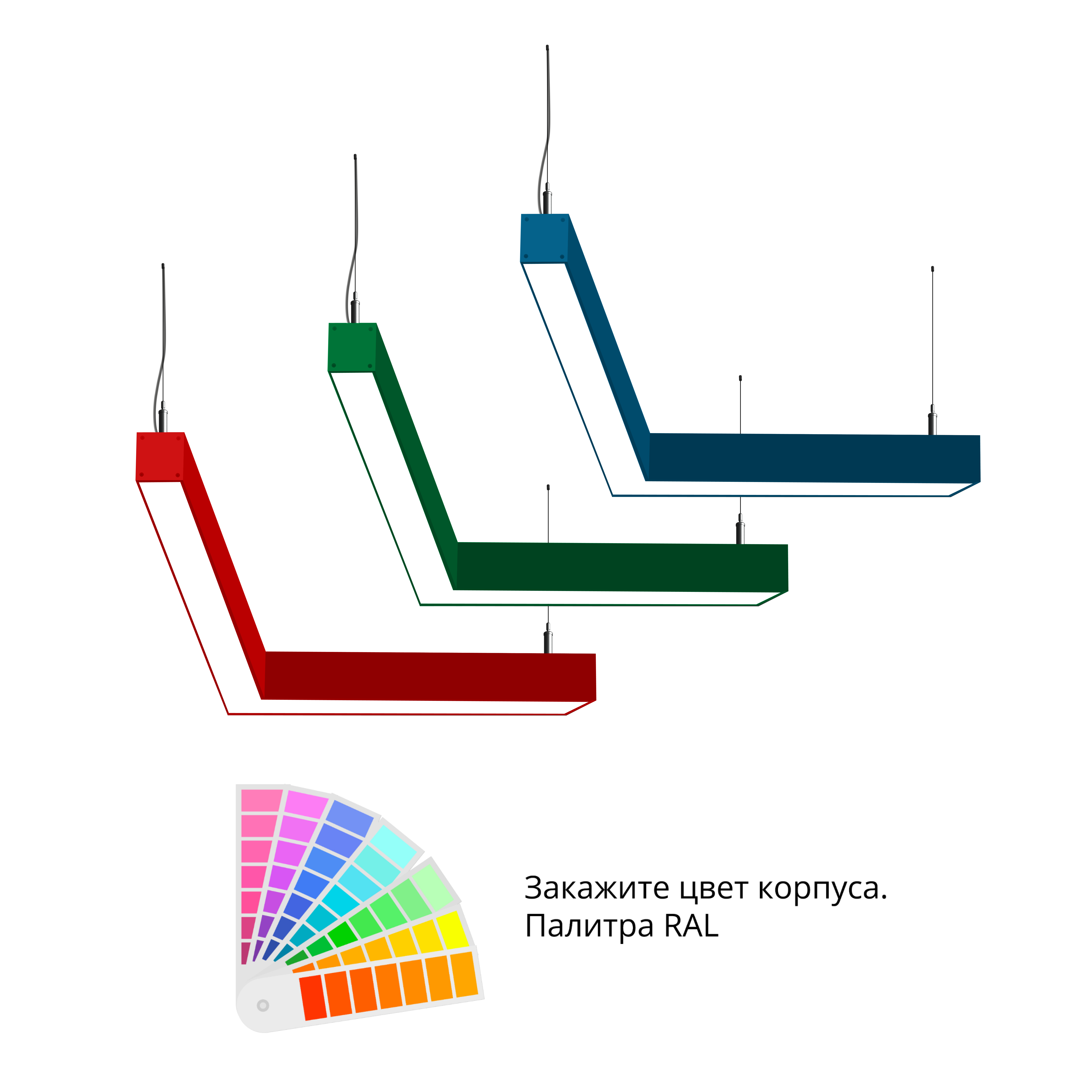 - Светильники доступны в базовых цветах: черный/серый/белый, дополнительно могут быть окрашены в любом цвете палитры RAL (уточняется у менеджера).