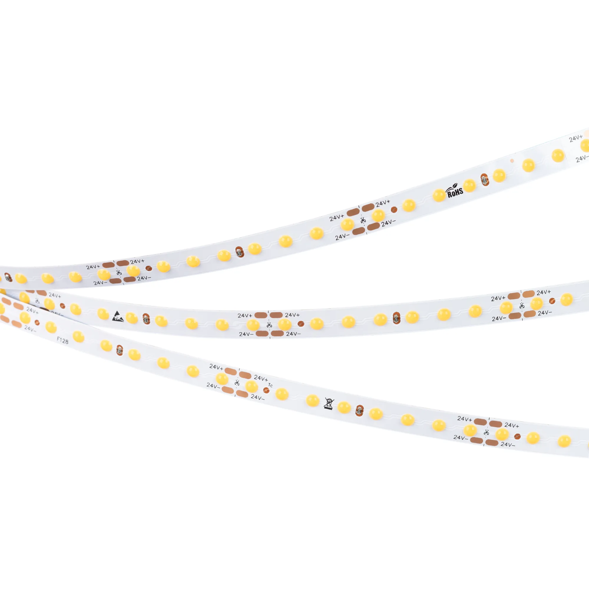 Светодиодная лента DOT с видимой световой точкой серии X128. Светодиоды CSP, 128 шт/м, белая плата шириной 8 мм, скотч 3M. Цвет ДНЕВНОЙ 4000K, индекс цветопередачи CRI>80, угол 145°. Питание 24 В, мощность 11 Вт/м (55 Вт на 5 м). Размеры 5000х8х1.2 мм. Мин. отрезок 62.5 мм, 8 светодиодов. Цена за 1 м.