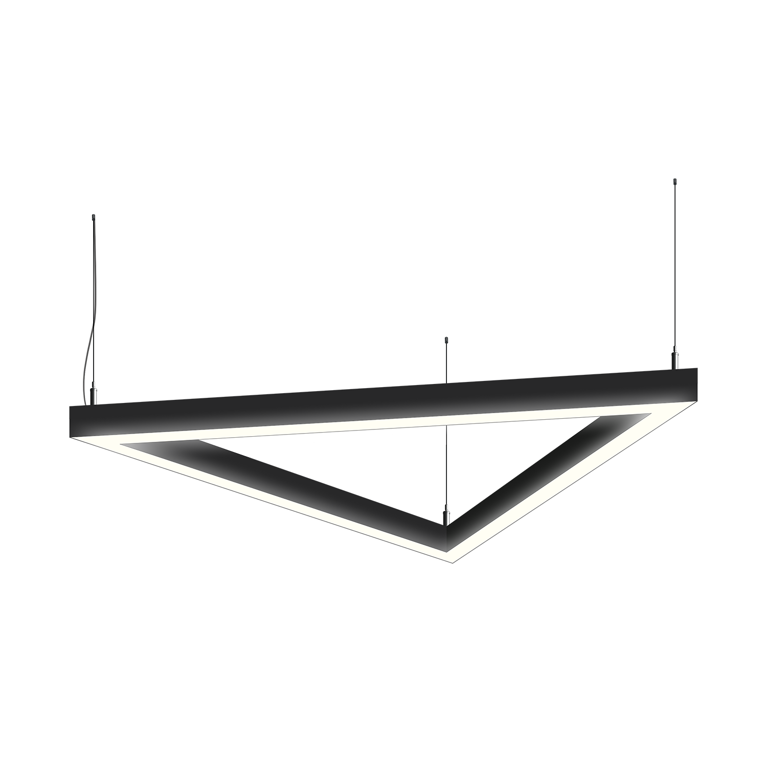 Cветодиодный фигурный светильник MS-TRIO-O Треугольник размер профиля 50x50мм длиной 3х750мм мощностью 40W. Светильник собирается из алюминиевого основния с матовым рассеивателем, который дает равномерную засветку по всей площади.