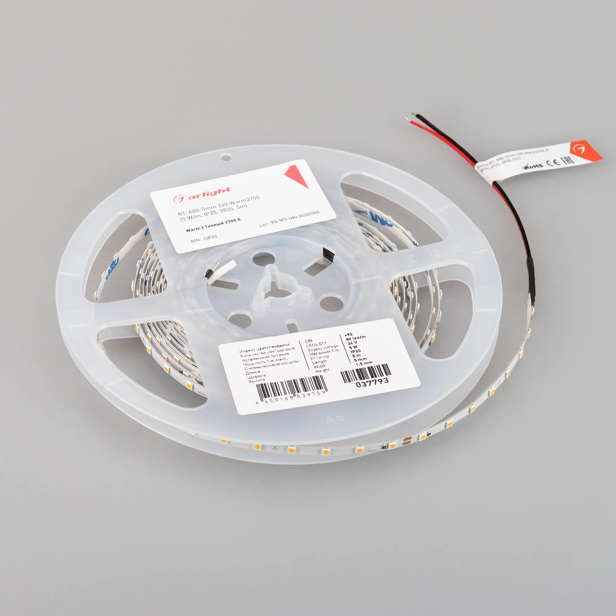 В магазине Арлед Маркет Вы можете купить "Лента светодиодная RT-A80-5mm 24V Warm2700 (5 W/m, IP20, 2835, 5m) (Arlight, Открытый)"