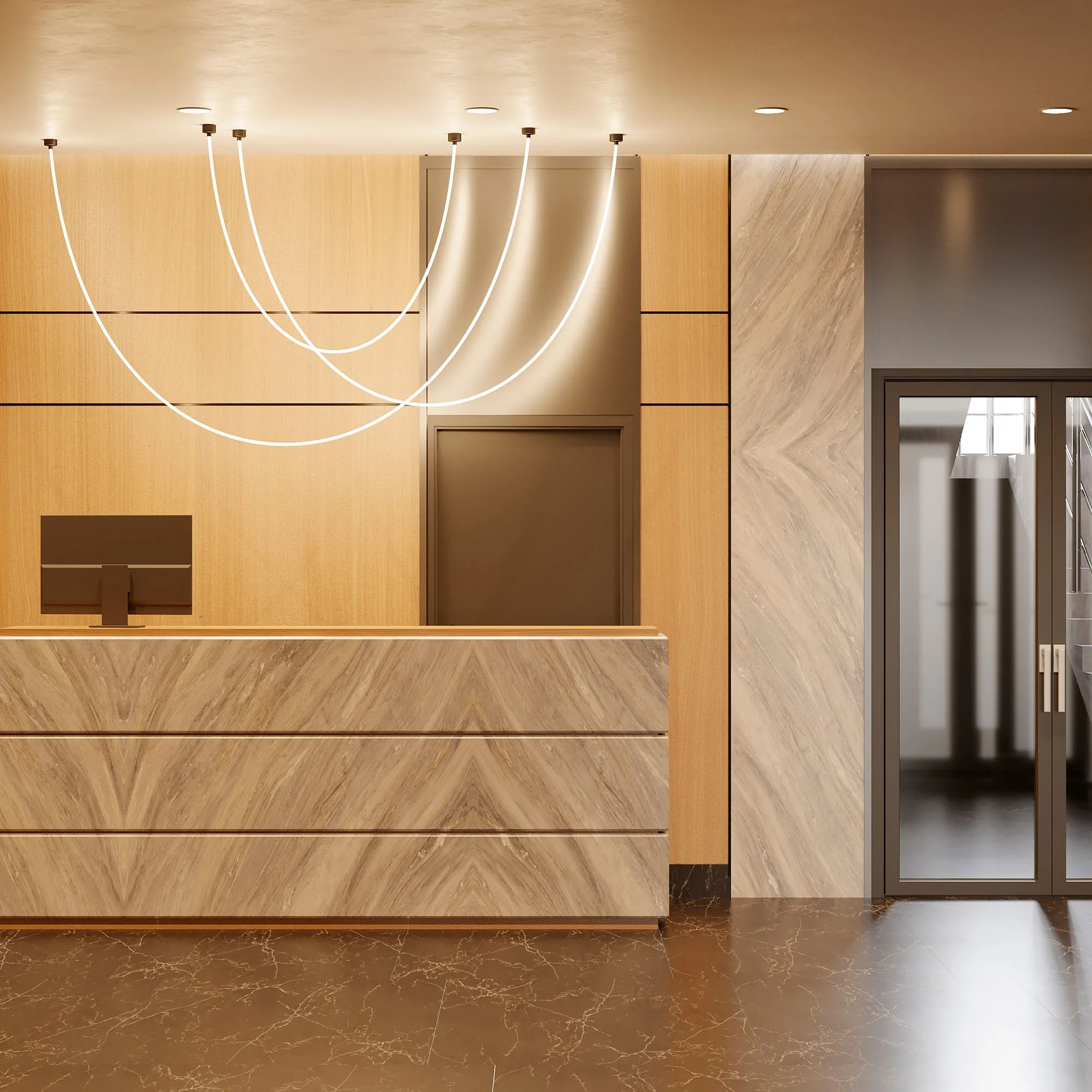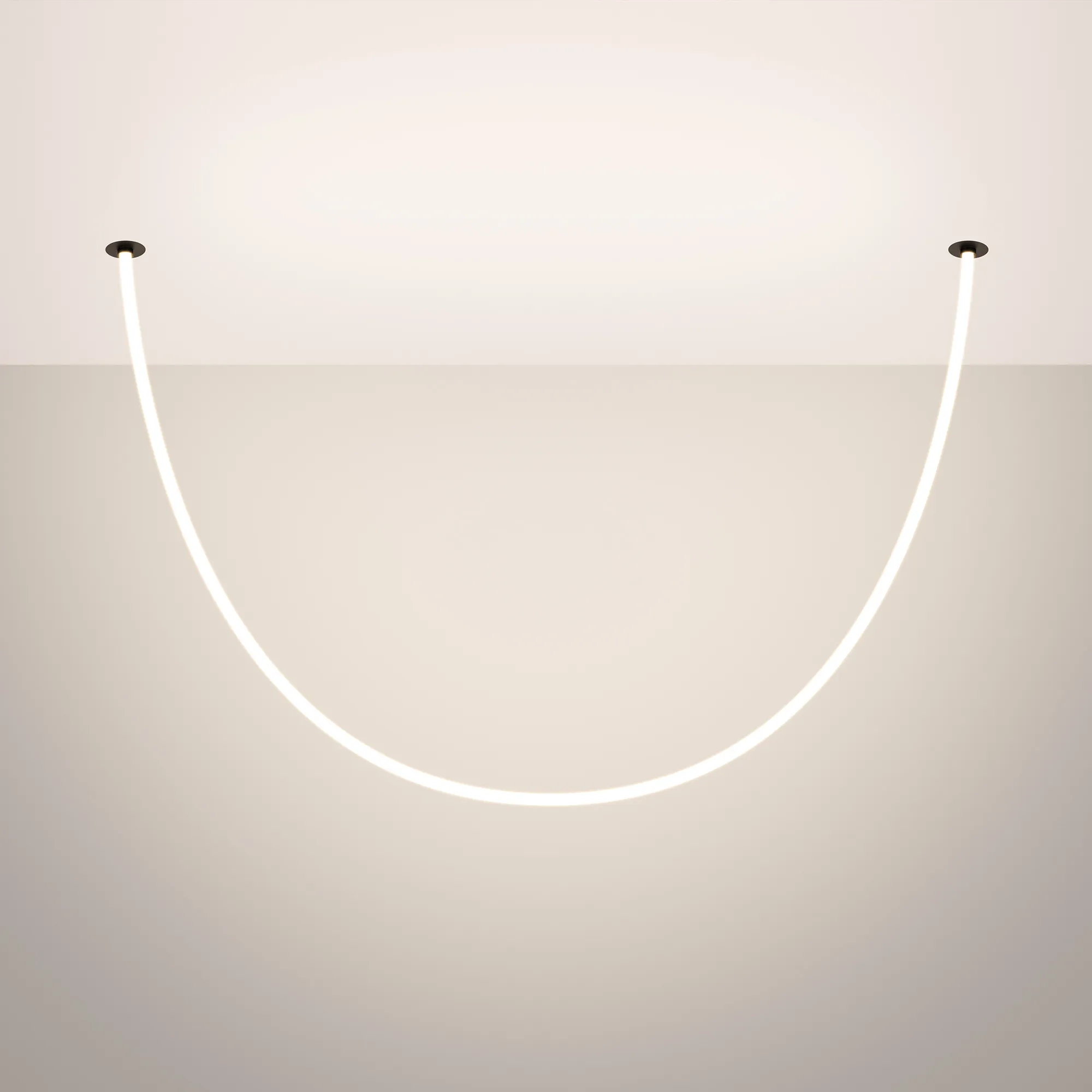 Подвесной светильник. Мощность 36 Вт, св. поток 2080 лм, 57 лм/Вт, тёплый 3000 K, CRI>90, угол 360°, напряжение питания 230 В. Черный круглый корпус из стали, силиконовая герметичная лента, степень защиты IP20. Размер: диаметр утапливаемой части чаши 64 мм, высота чаши с утапливаемой частью без вывода под неон 40 мм, общая высота чаши 57 мм, диаметр чаши с фланцем 100 мм, диаметр силиконовой герметичной ленты 18 мм, длина силиконовой герметичной ленты 2500 мм. Монтаж встраиваемый, глубина установки 55 мм, диаметр установочного отверстия 70 мм. Блок питания 24 В, 1880 мА, пульсация <1%.