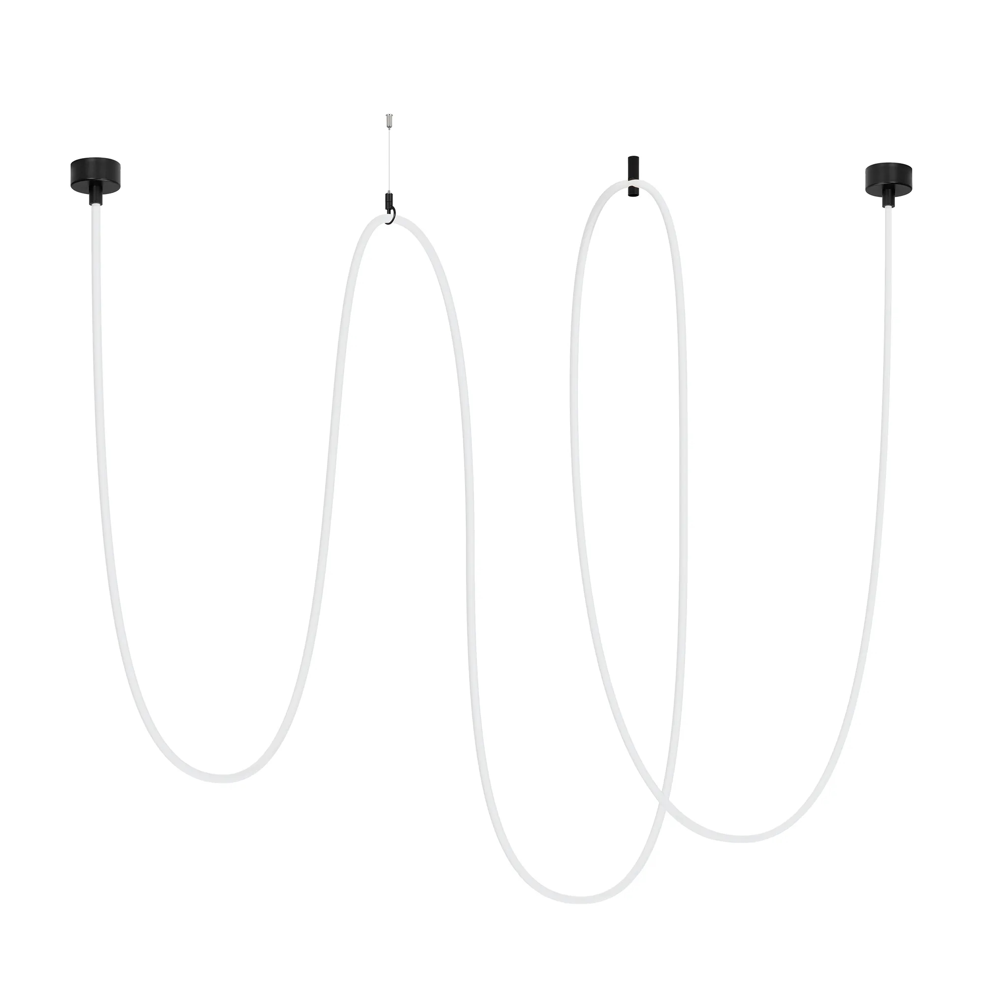 Подвесной светильник. Мощность 110 Вт, св. поток 5960 лм, 54 лм/Вт, тёплый 3000 K, CRI>90, угол 360°, напряжение питания 230 В. Черный круглый корпус из стали, силиконовая герметичная лента, степень защиты IP20. Размер: общая высота чаши 85 мм, высота чаши без вывода под неон 50 мм, диаметр вывода под неон 35 мм, диаметр чаши 130 мм, диаметр силиконовой герметичной ленты 18 мм, длина силиконовой герметичной ленты 10000 мм. Монтаж накладной. Блок питания 24 В, 2500 мА, пульсация <5% (2 шт.). Аксессуары (подвес и крепление) приобретаются отдельно.