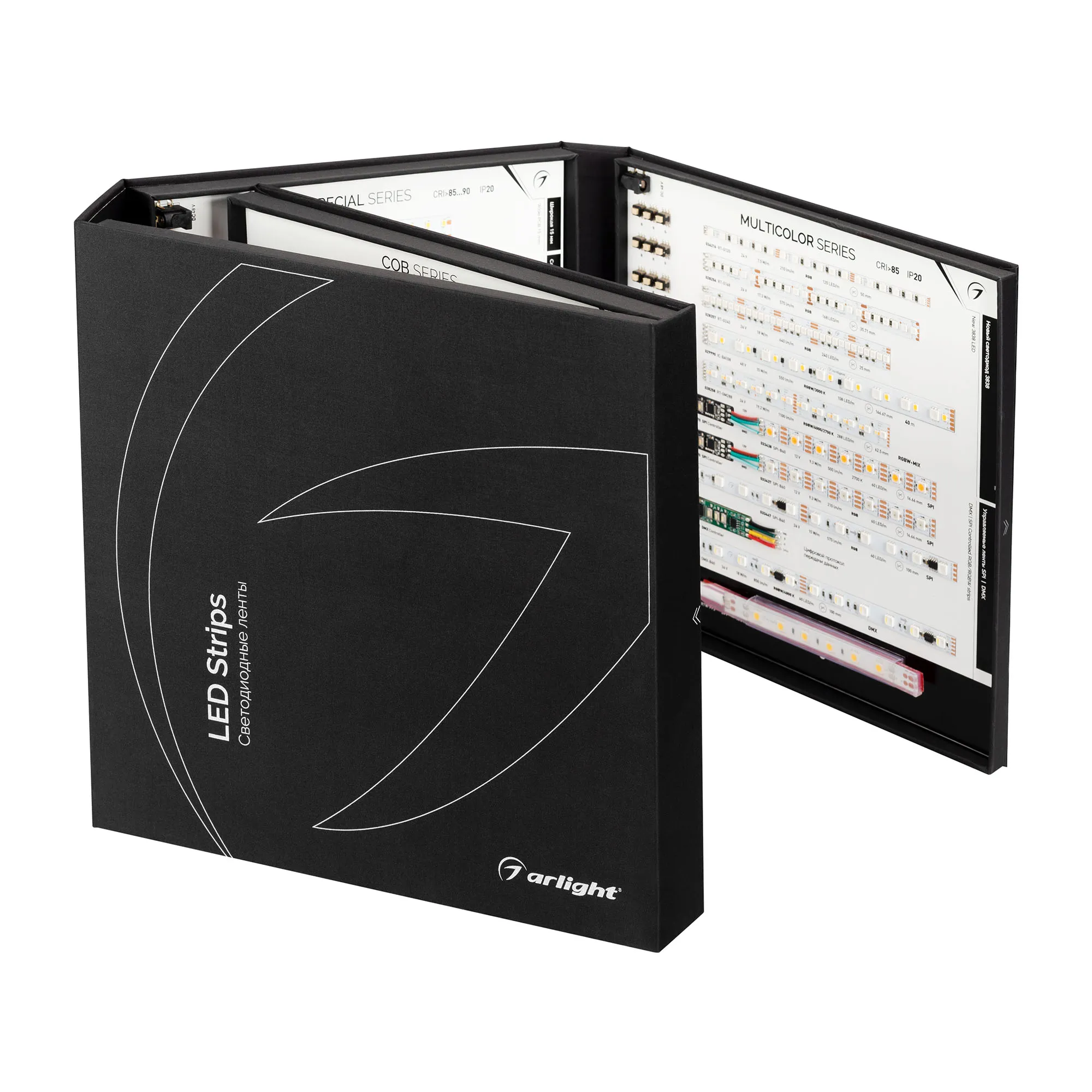В кейс входят 42 образца моделей лент COB, RT, MICROLED, IC, MIX, SPI, DMX.
