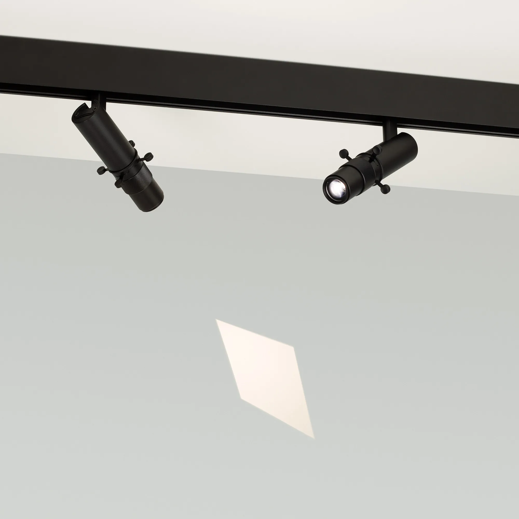 Светильник с кадрируемой оптикой и изменяемым углом для магнитных треков MAG-ORIENT шириной 26 мм. Мощность 6 Вт, св. поток 60-100 лм, 17 лм/Вт, теплый 3000 K, CRI>98, угол 19-29°, напряжение питания 48 В. Черный фигурный корпус из металла, степень защиты IP20. Размеры LxWxH 126x35x195 мм. Длина светоизлучающего модуля 140мм. Монтаж на трек MAG-ORIENT. Пульсация <1%.