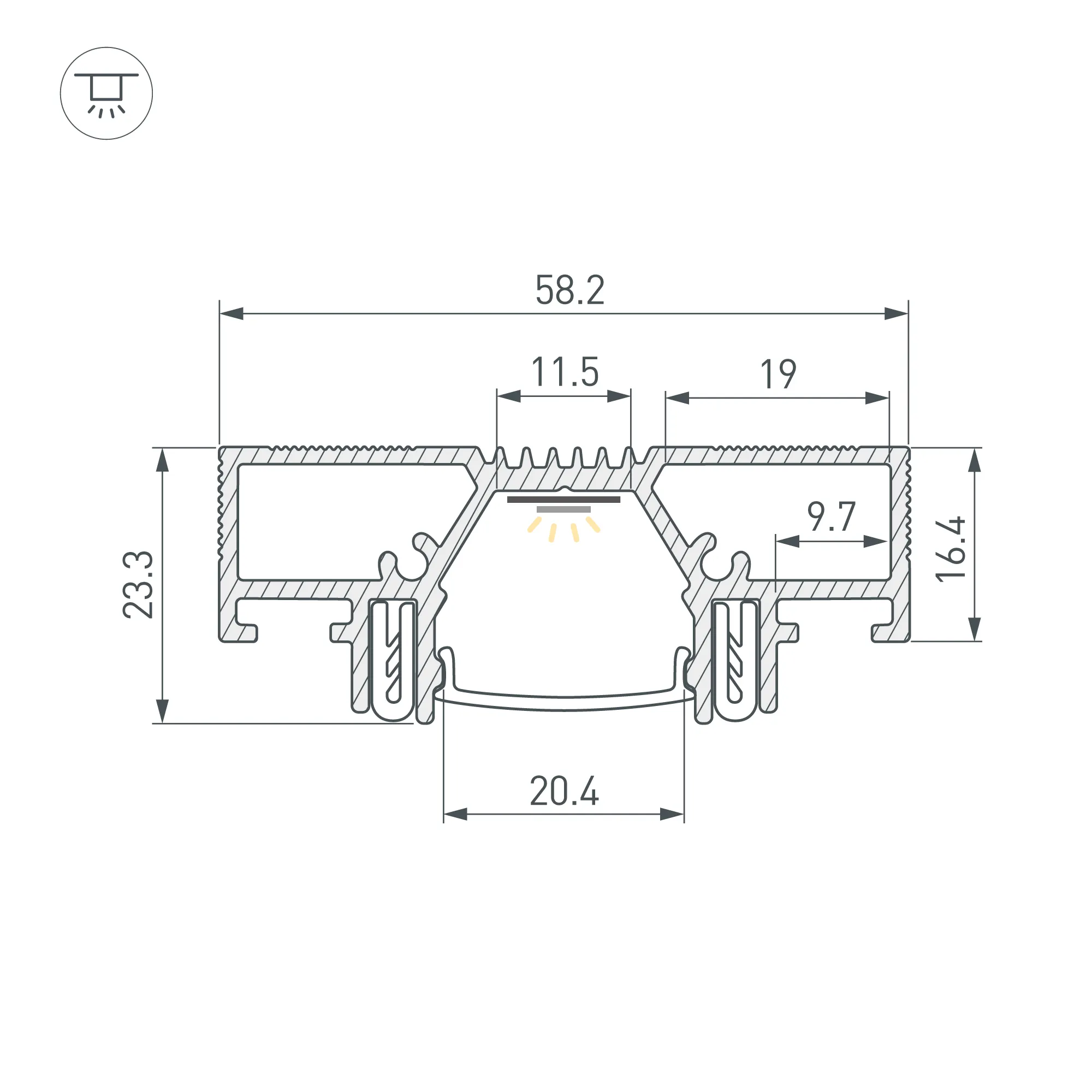 Алюминиевый профиль SLOTT for ARLIGHT для монтажа натяжных потолков (центральная световая линия). Самонесущая конструкция для крепления натяжного потолка с пазом для установки светодиодной ленты. Для создания световых линий в натяжных потолках. Возможность установки до 3х лент. Демпферная система крепления натяжного потолка. Цвет - белый RAL9003 (порошковая окраска). Ширина основной площадки для ленты 11,5 мм. Есть две дополнительные площадки по 10 мм. Длина 2000 мм. Цена за 1 м.