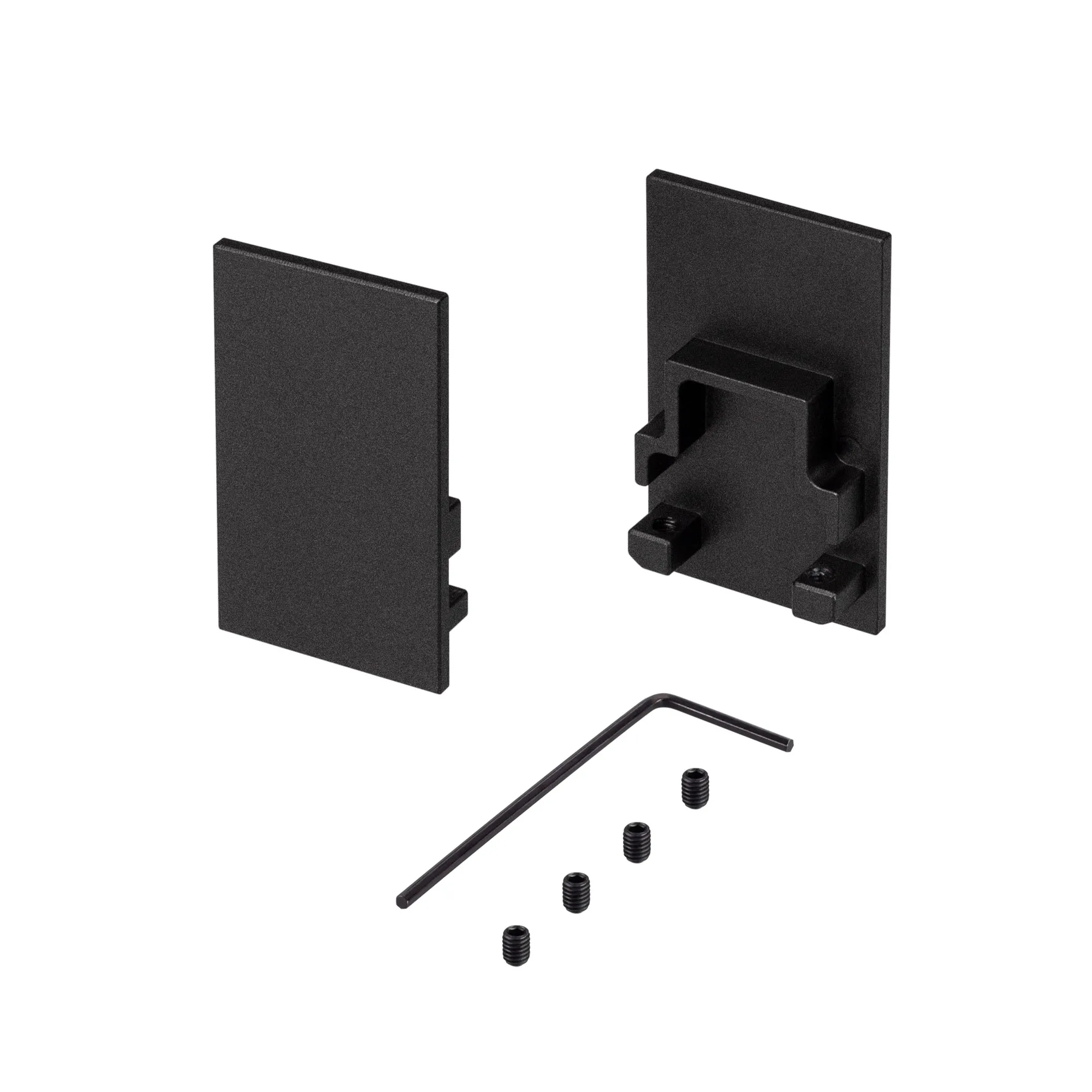 Пара заглушек с зернистым покрытием (без отверстия) для профиля SL-COMFORT-2542 BLACK. В комплекте 2 заглушки, 4 винта, шестигранный ключ. Цена за комплект.