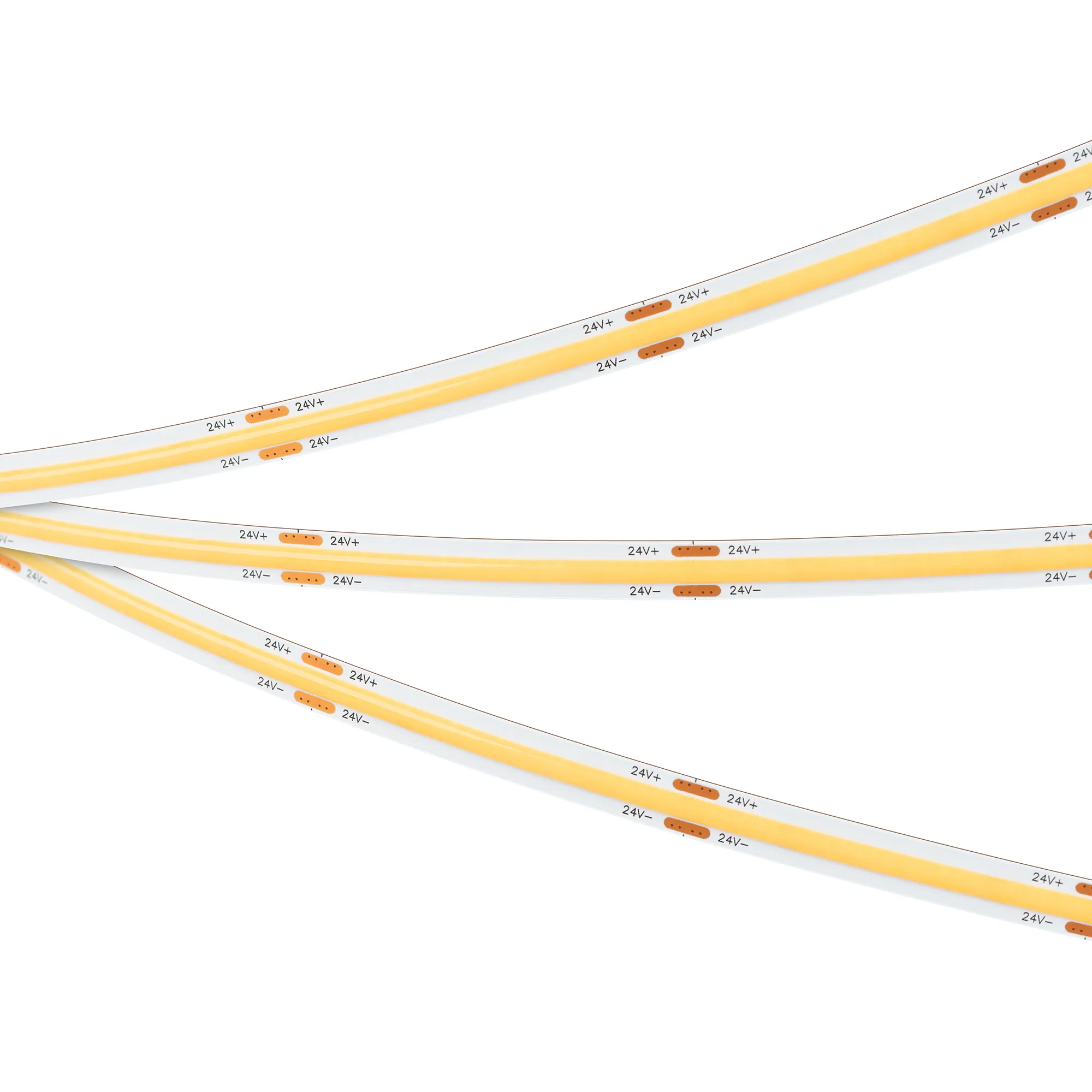 Светодиодная лента сплошного свечения COB серии X480 (монтажная бобина 20 м). Светодиоды CSP, 480 шт/м, белая плата шириной 8 мм, скотч 3M. Цвет ТЕПЛЫЙ 3000K, индекс цветопередачи CRI>90, угол 160°. Питание 24 В, мощность 10 Вт/м (200 Вт на 20 м). Размеры 20000х8х1.8 мм. Мин. отрезок 50 мм. Цена за 1 м. Разрезать перед подключением. Макс. длина подключения 5 м.