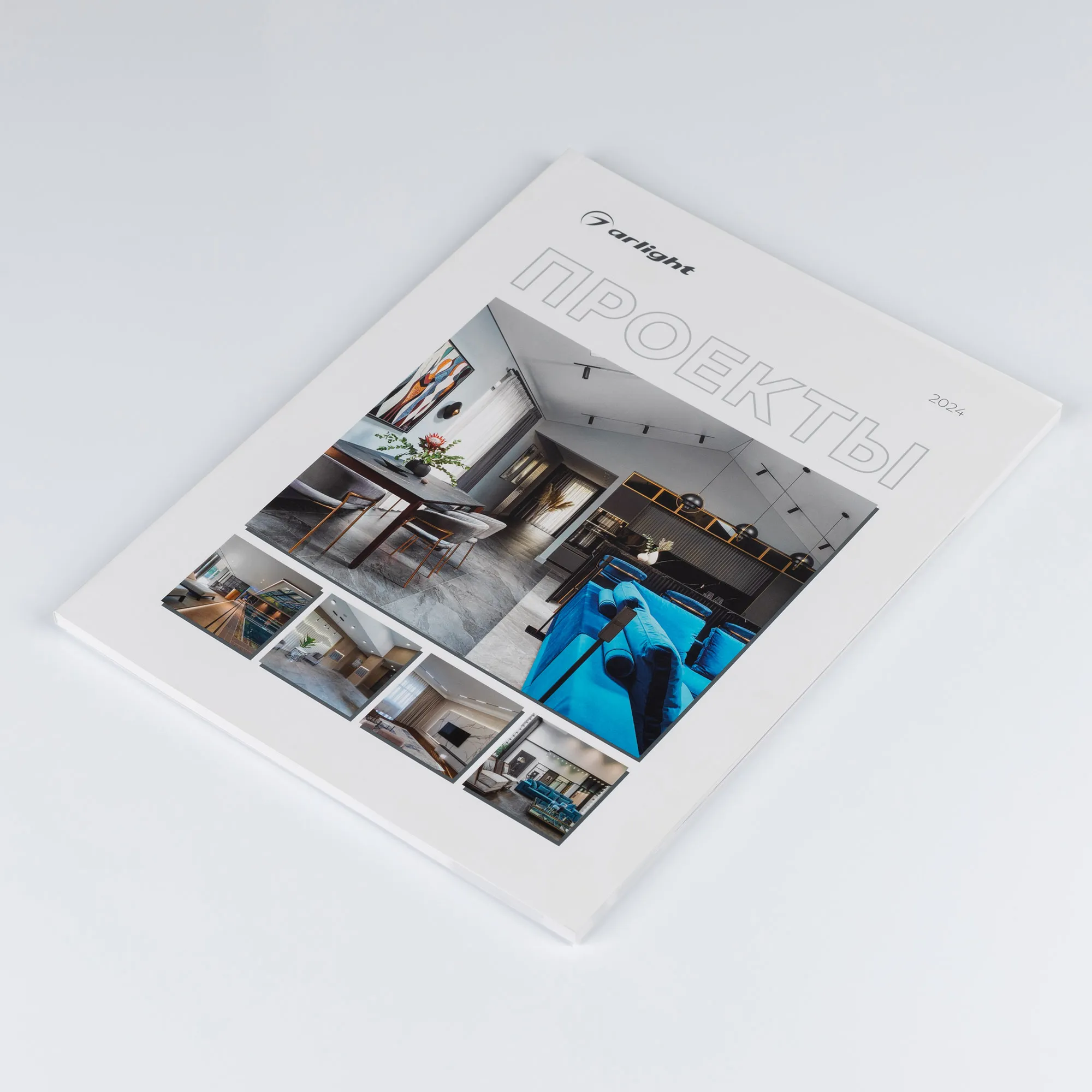 Каталог Проекты ARLIGHT 2024. Формат А4, 220x297. Обложка: полос 2, Бумага мел.мат. 270, Цветность 4+0, УФ лак 1+0 Выборочный от 30 %, Ламинация Софтач Люкс 1+0. Блок: Полос 92, Бумага мел.мат. 130, Цветность 4+4, ВД лак 1+1 матовый.