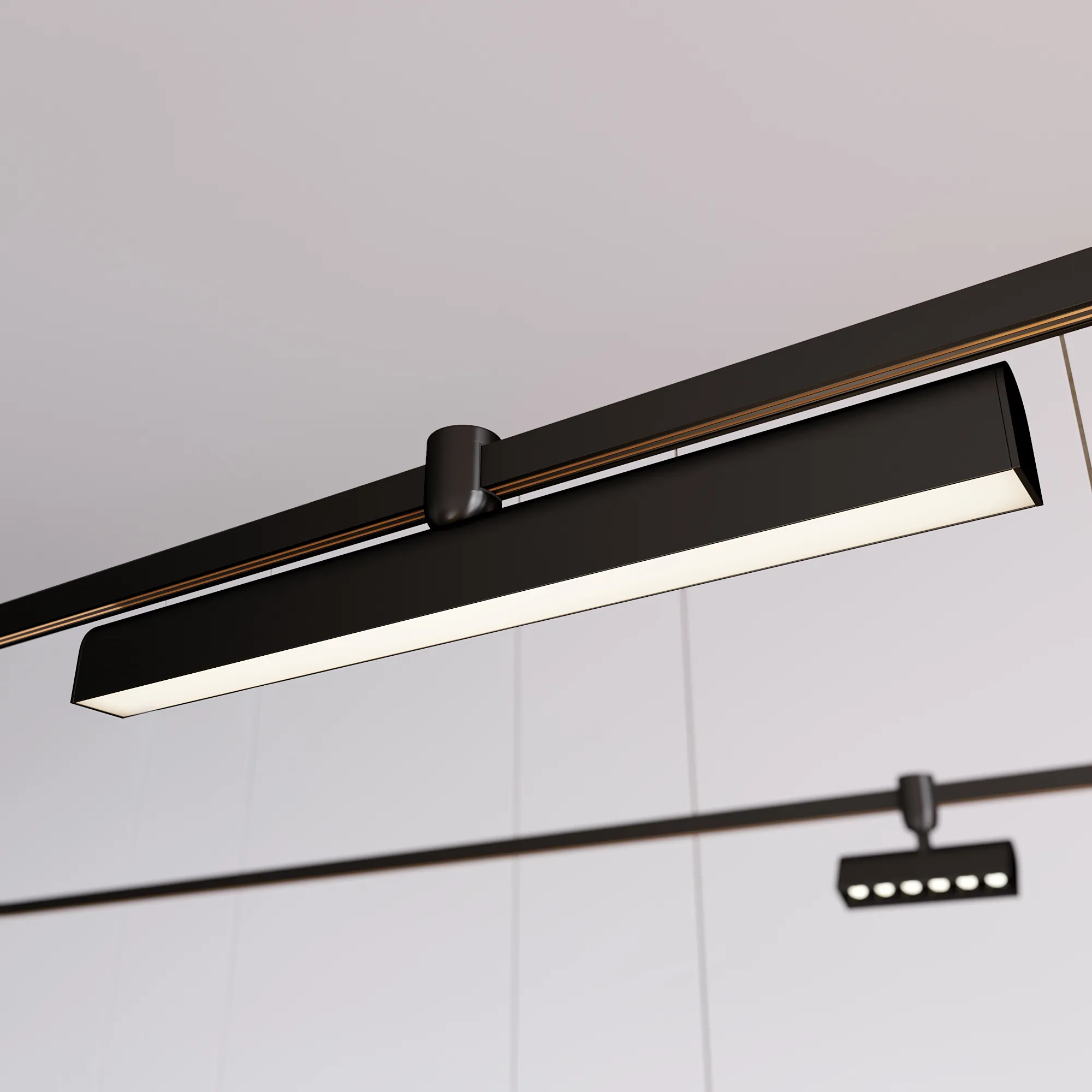 Светильник для треков APRIORI шириной 17 мм. Мощность 15 Вт, св. поток 600 лм, 40 лм/Вт, дневной 4000 K, CRI>90, угол 120°, напряжение питания 48 В. Черный линейный корпус из алюминия, экран поликарбонат, степень защиты IP20. Размер: длина 500 мм, ширина 38 мм, высота 95 мм. Монтаж на трек APRIORI 17 мм. Пульсация <1%. Возможно диммирование по ШИМ (PWM) или не адресное управление при использовании диммируемого драйвера Dali, 0-10V, TRIAC.