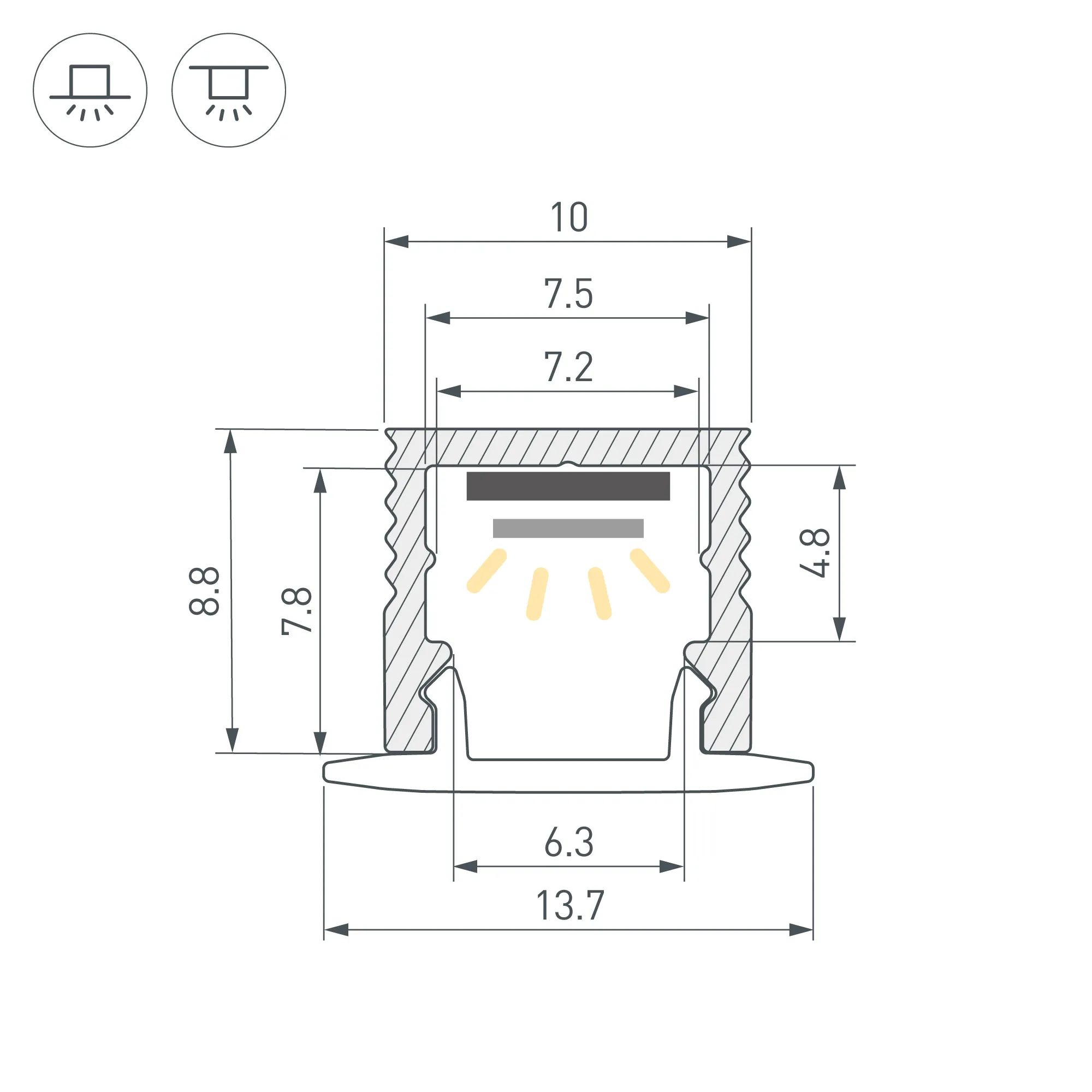 Алюминиевый анодированный микропрофиль для светодиодных лент и линеек. Цвет - черный RAL9005 (порошковая окраска). Габаритные размеры (L×W×H): 2000x10x8,8 мм. Ширина площадки для ленты 7,5 мм. Экраны, заглушки и другие аксессуары приобретаются отдельно. Цена за 1 метр.