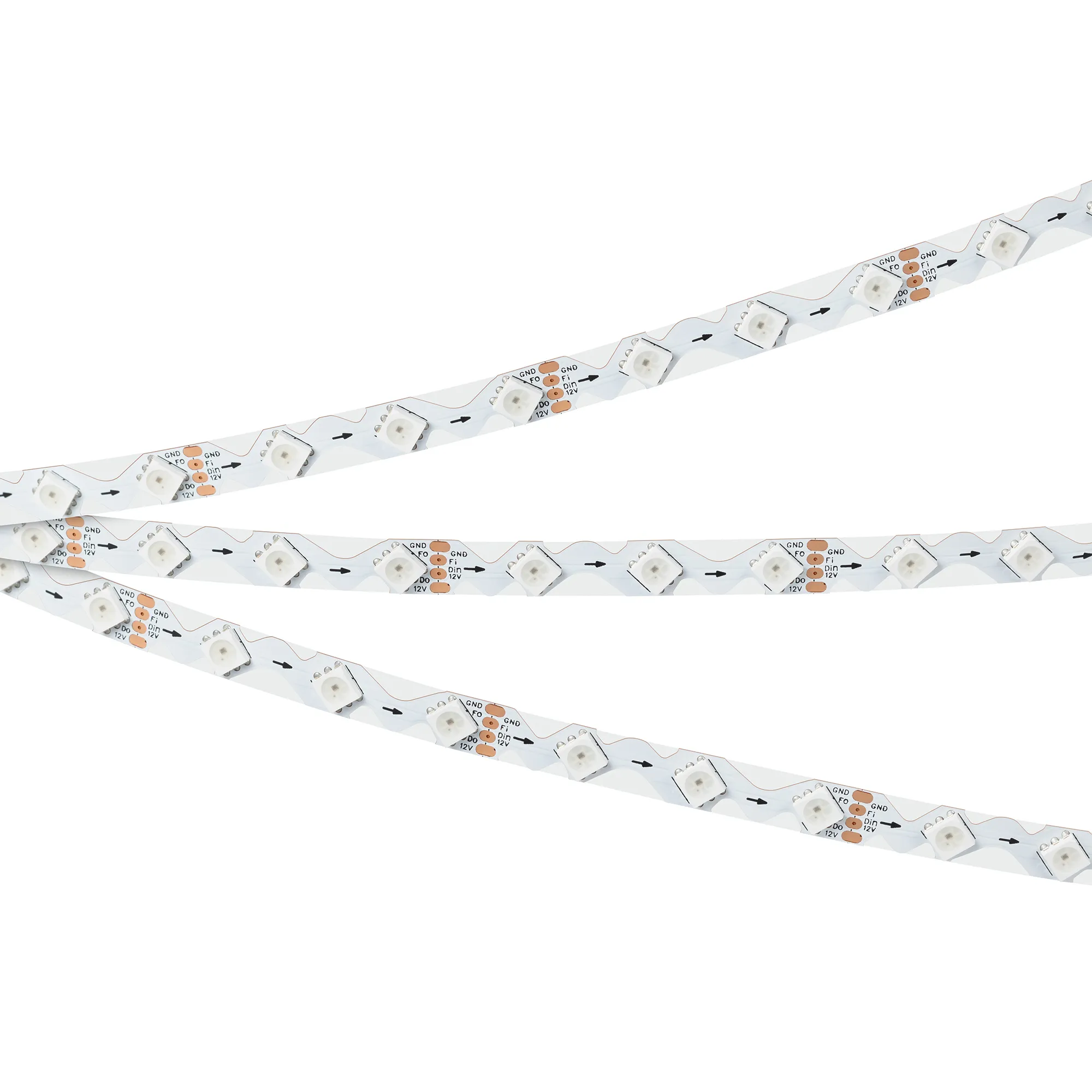Светодиодная лента SPI серии B60 с микросхемой SK6813. Светодиоды SMD 5060, 60 шт/м, 60 pixels на 1 м (300 pixels на 5 м), 1 pixel = 1 светодиод, белая плата шириной 8 мм, скотч 3М. Цвет RGB, угол 120°. Питание 12 В, мощность 9 Вт/м (45 Вт на 5 м). Размеры 5000x8x2.2 мм. Мин. отрезок 50 мм, 3 светодиодов. Цена за 1 м.